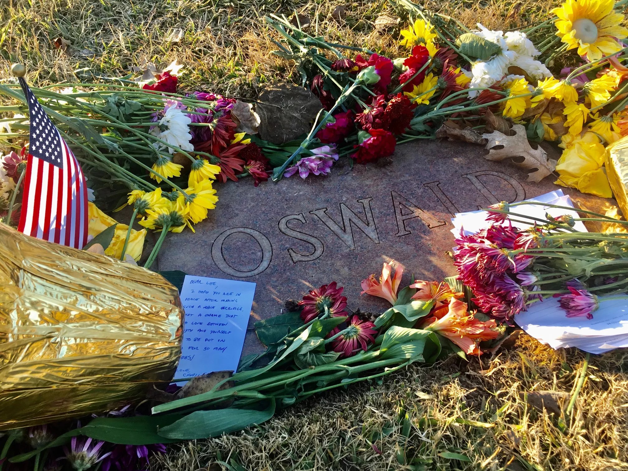 Oswald’s lawn-level headstone is simple. There isn’t a birthdate or death date, no epitaph either, it simply reads, “OSWALD.”
