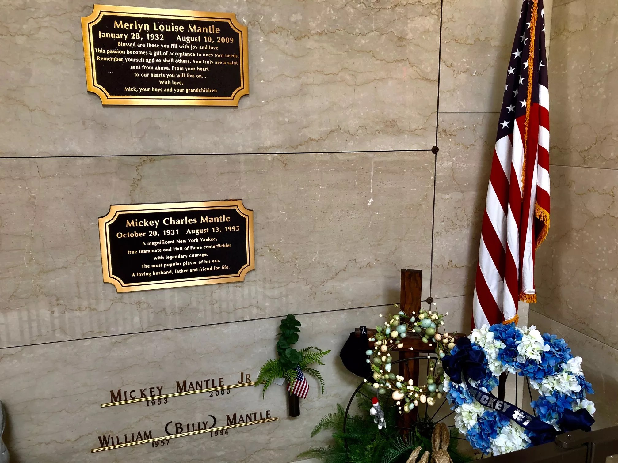 Along with his wife, and two of four sons, Mickey Jr. and Billy, Mantle rests in the Sparkman-Hillcrest Mausoleum. Mounted against the polished marble wall, Mantle’s epitaph reads, “A magnificent New York Yankee, true teammate and Hall of Fame centerfielder with legendary courage. The most popular player of his era. A loving husband, father and friend for life.”