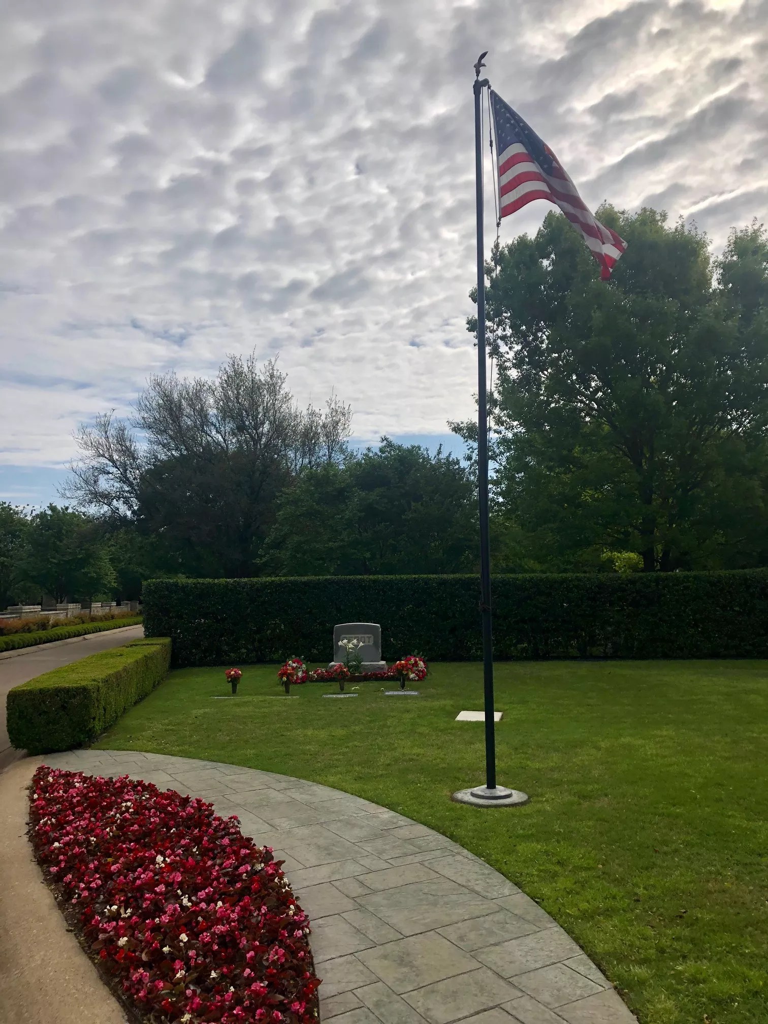 An American flag flies above the Perot Family’s beautiful garden in Sparkman-Hillcrest. Seven Perots are there including local business tycoon, philanthropist and politician Henry Ross Perot. Mary Kay Ash, founder of Mary Kay Cosmetics, is also at Sparkman-Hillcrest in the mausoleum.