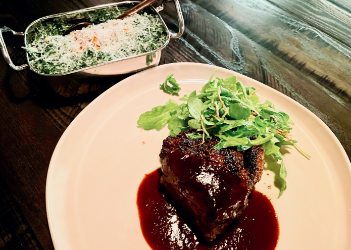 With a moody “saints and sinners” inspired vibe, dark walls and muted lighting, The Saint is channeling Vegas. But dinner sourced from local ranches proved to be inspiring as well.