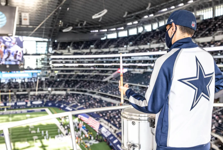 The Dallas Cowboys’ Rhythm & Blue drumline and dance troupe is looking for new drummers to pound on the skins between downs at Cowboys’ home games and other live events.