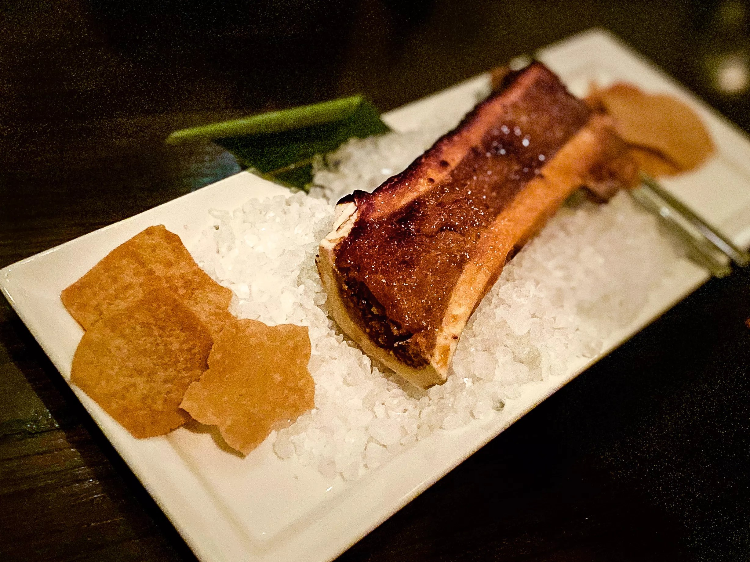 This Japanese restaurant is often considered one of the best in Dallas, specializing in freshly made soba dishes. They also have a veal bone marrow on the menu. It comes sitting on a bed of rock salt with soba crackers on which to spread the luscious marrow, which has a miso glaze. Positives: great flavor, and unlike many of the places on this list, they provided a spoon in order to get all the goodness out of the bone. It was also the least expensive on this list at $14, but that comes at a price, and it’s the one negative: there is only one bone-half to an order.