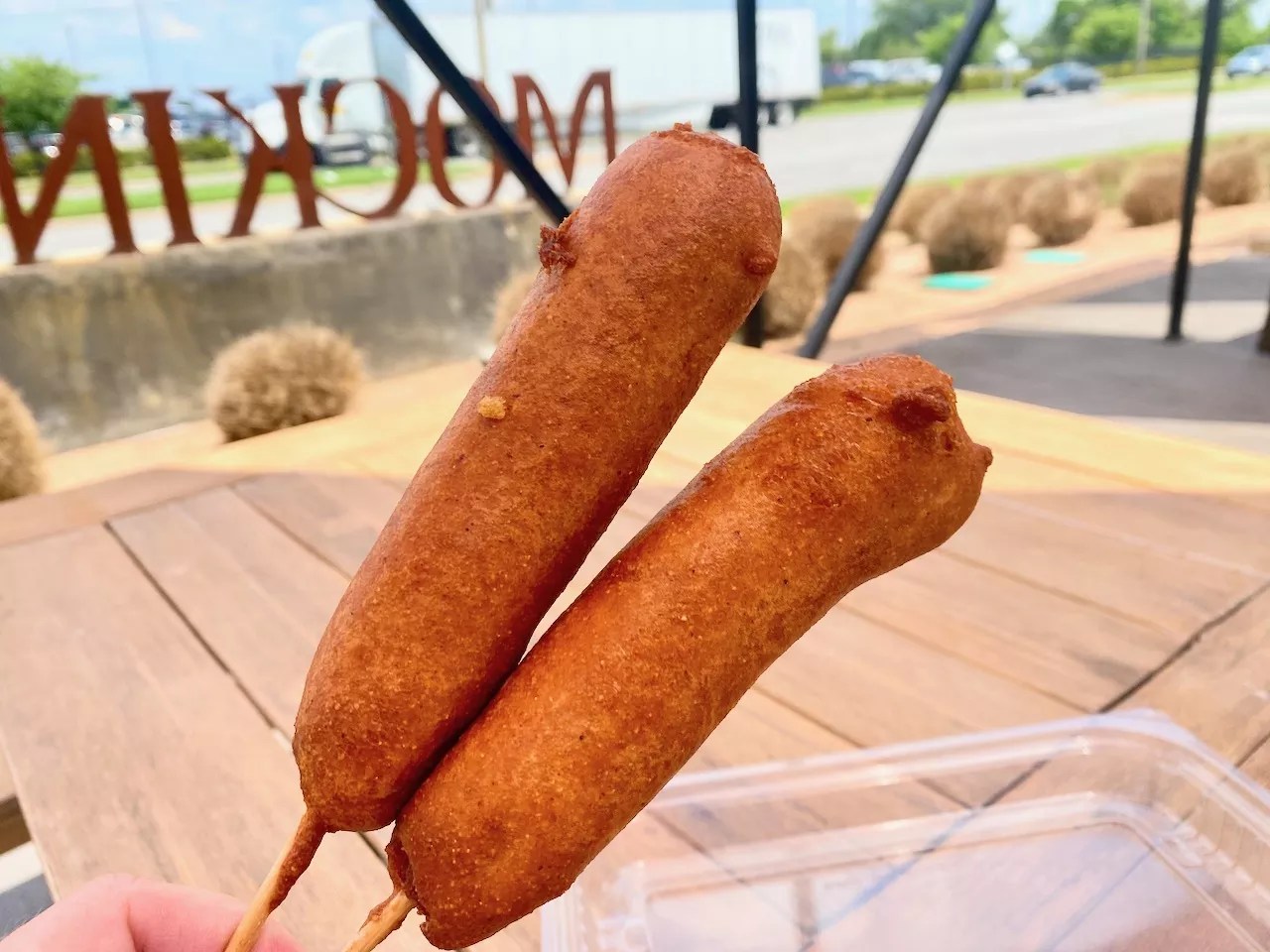 In addition to the original corny dog, there are other variations available, such as the jalapeño and cheese, the bird dog, the veggie dog, the cheezy pup and the “make mine Texan dog.” They also offer old-fashioned funnel cakes, curly fries, lemonade and deep-fried Oreos. Some corn dog options can also be shipped throughout the U.S. via Goldbelly.
