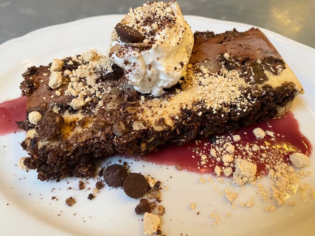 The hardest choice of the summer might have been choosing a dessert. There’s a banana pudding made with a Marker’s Mark caramel or a summertime cobbler with “sugar biscuits” and Texas peaches. We got the frozen chocolate PB&G (grapes, not jelly). Let that guy linger on your plate for a minute before diving in. It’s better just a wee bit soft.
