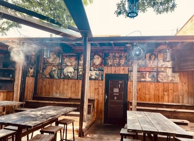 Guests will pick up on that unique, haunted Deep Ellum vibe with a modern-day hipster feel. The patio is all the way back, right past the old cigarette vending machine. Take the hall with the “patio” sign above it to a breezy and comfortable outdoor space, despite a 100-degree heat index. With a big tree in the corner for shade, along with the misters and fans going, it’s perfect for al fresco day drinking. There was no live music that day, but it’s apparent that when a band is playing on the corner stage it would be an intimate experience.
