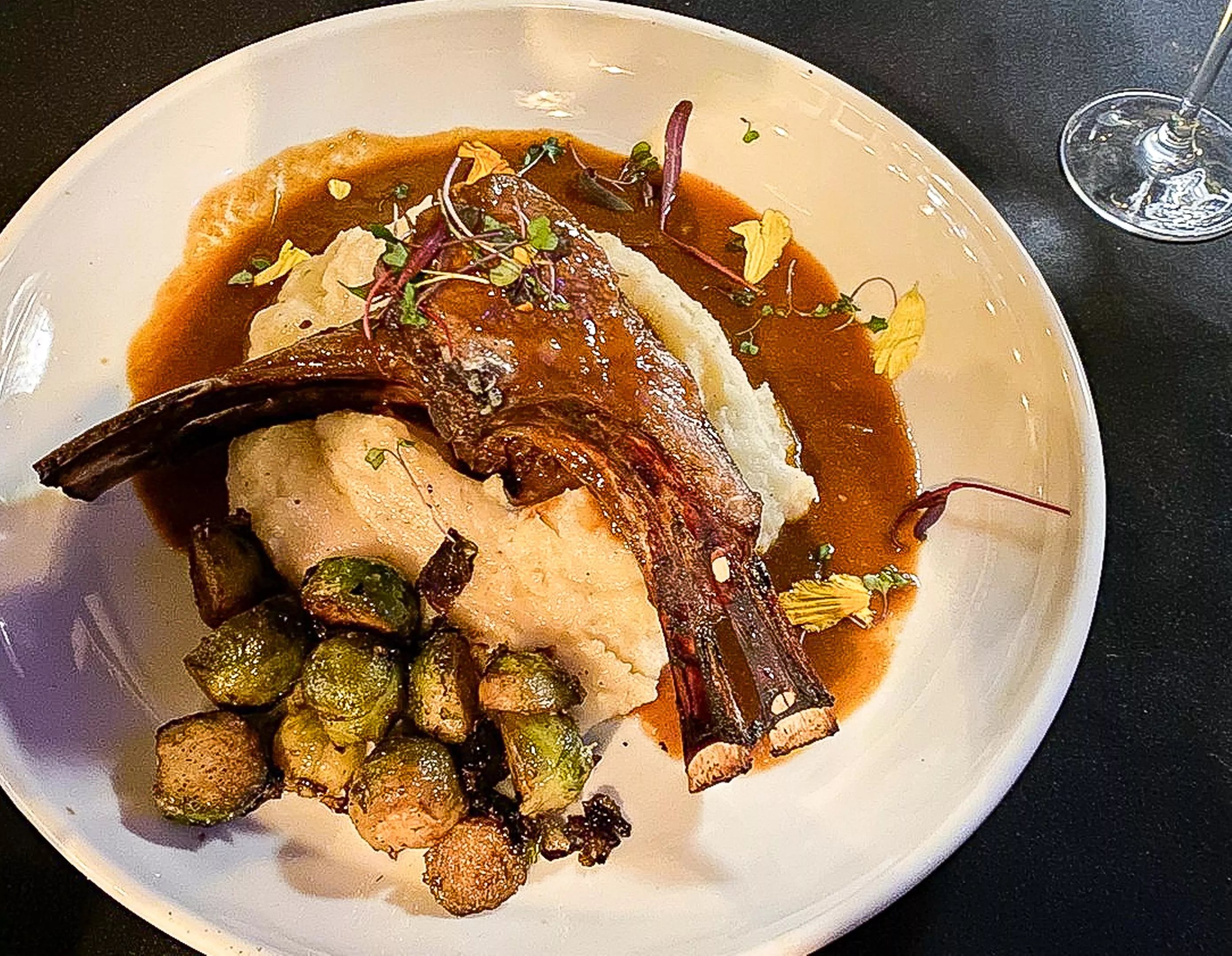 The true party of flavors was the adobo rack of lamb. The New Zealand rack is spice-rubbed and slow braised in a housemade adobo, finished on a flame grill and served atop spiced mashed potatoes and marinated, fire-roasted Brussels sprouts. Rich and flavorful, with each element complementing the last, it was home-cooked level delicious and just as nostalgic.