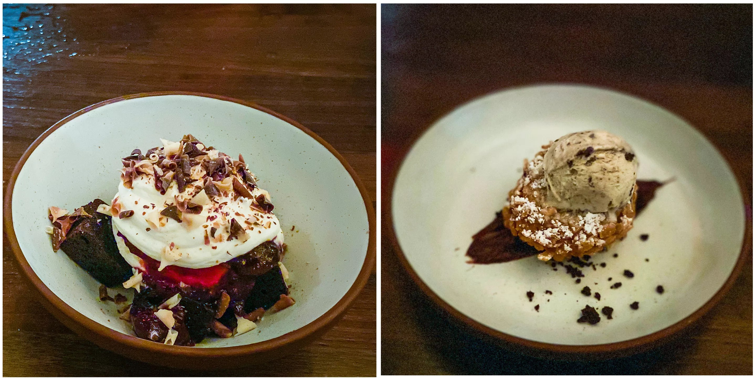 Chocolate cherry ice cream sundae & deep-fried Oreo.