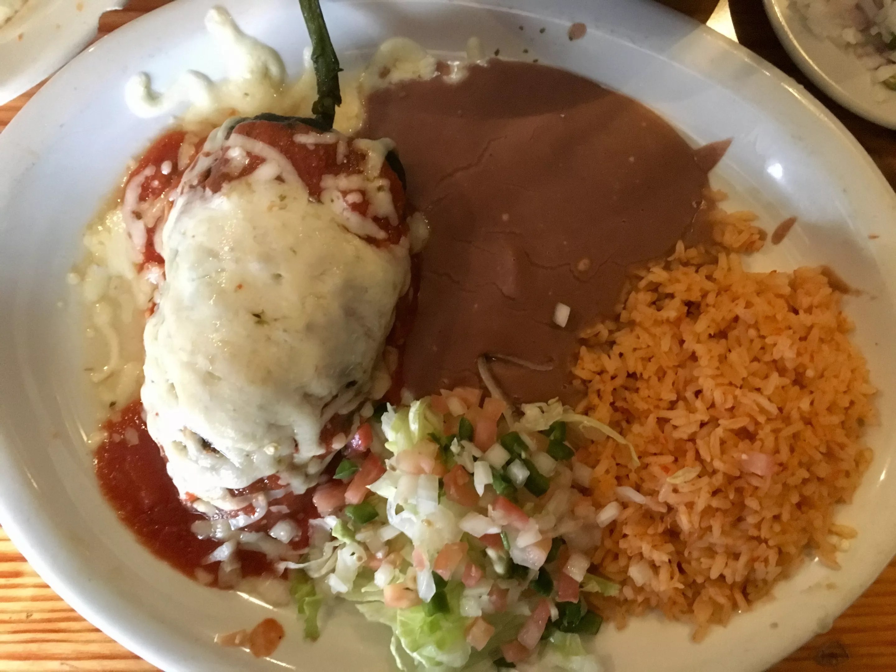 The chile relleno, stuffed with brisket, is one of the best Tex-Mex dishes in the city ($12.95).