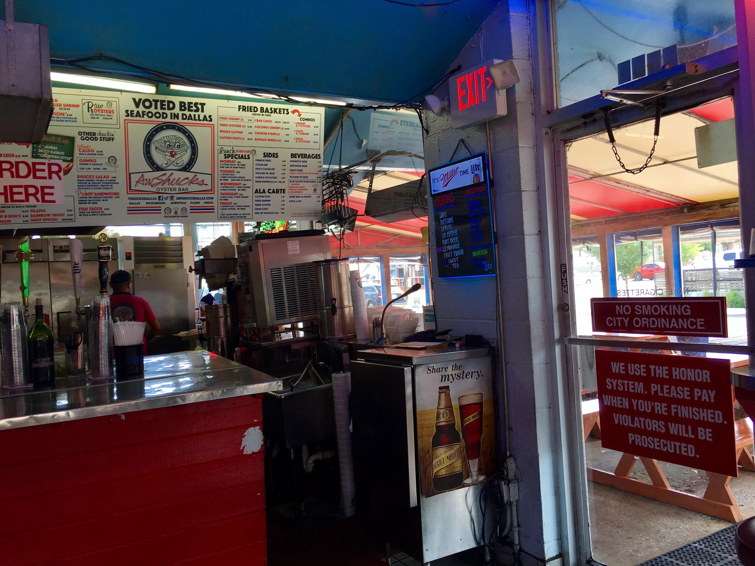 It’s hard to imagine another restaurant that uses the honor system for paying your check. At Aw Shucks, you order at the bar, your food finds your table and, once you’re done, you employ basic human trust and decency by relaying what you ordered at the front register. Shucks provides a pad of bingo card-sized menus and tiny pencils to check off your order items if you’re forgetful.