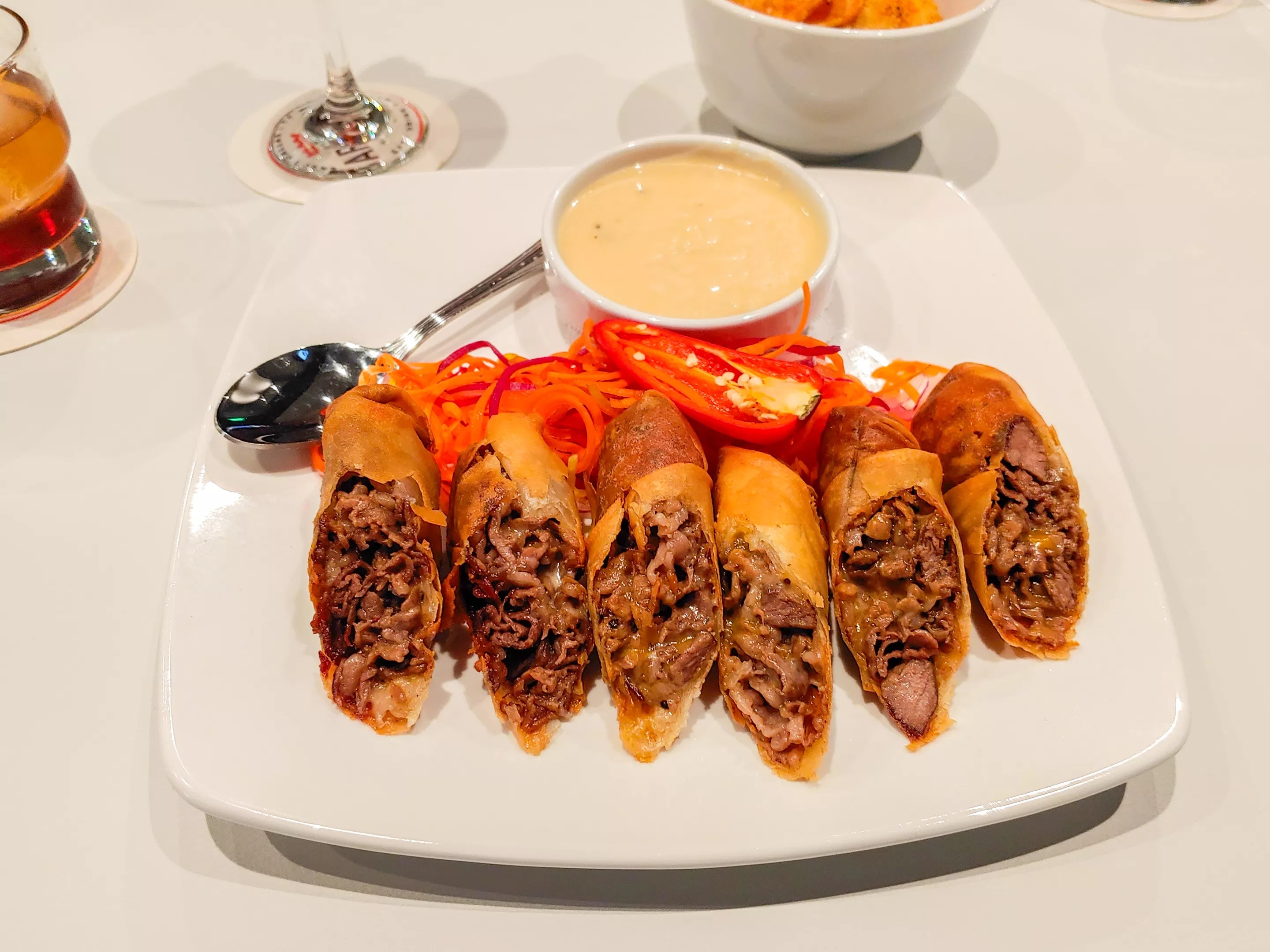 As mentioned, the clams casino is reminiscent of Louie’s, there’s a cheesesteak and cheesesteak egg rolls, the Cioppino is a take on Rex’s Seafood’s Manhattan-style clam chowder, and a spin on the burger at Hillstone made with 10 ounces of house-ground Rosewood Ranch Wagyu beef. Even the cocktail menu has nods to local watering holes.
