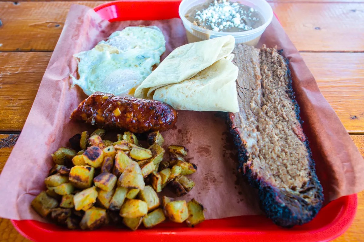Now we’re here to tell you that barbecue for breakfast is an even better idea. Besides the obvious life lessons you’ve been skipping so far, getting some breakfast barbecue lets you bypass two of our least favorite aspects about barbecue dining: long lines and sellouts. In our travels, we’ve found the spots selling barbecue first thing in the morning are lightly attended. If you’re at a spot early, the chances of them being out of something you came for are significantly lowered. That’s a double win in our book.