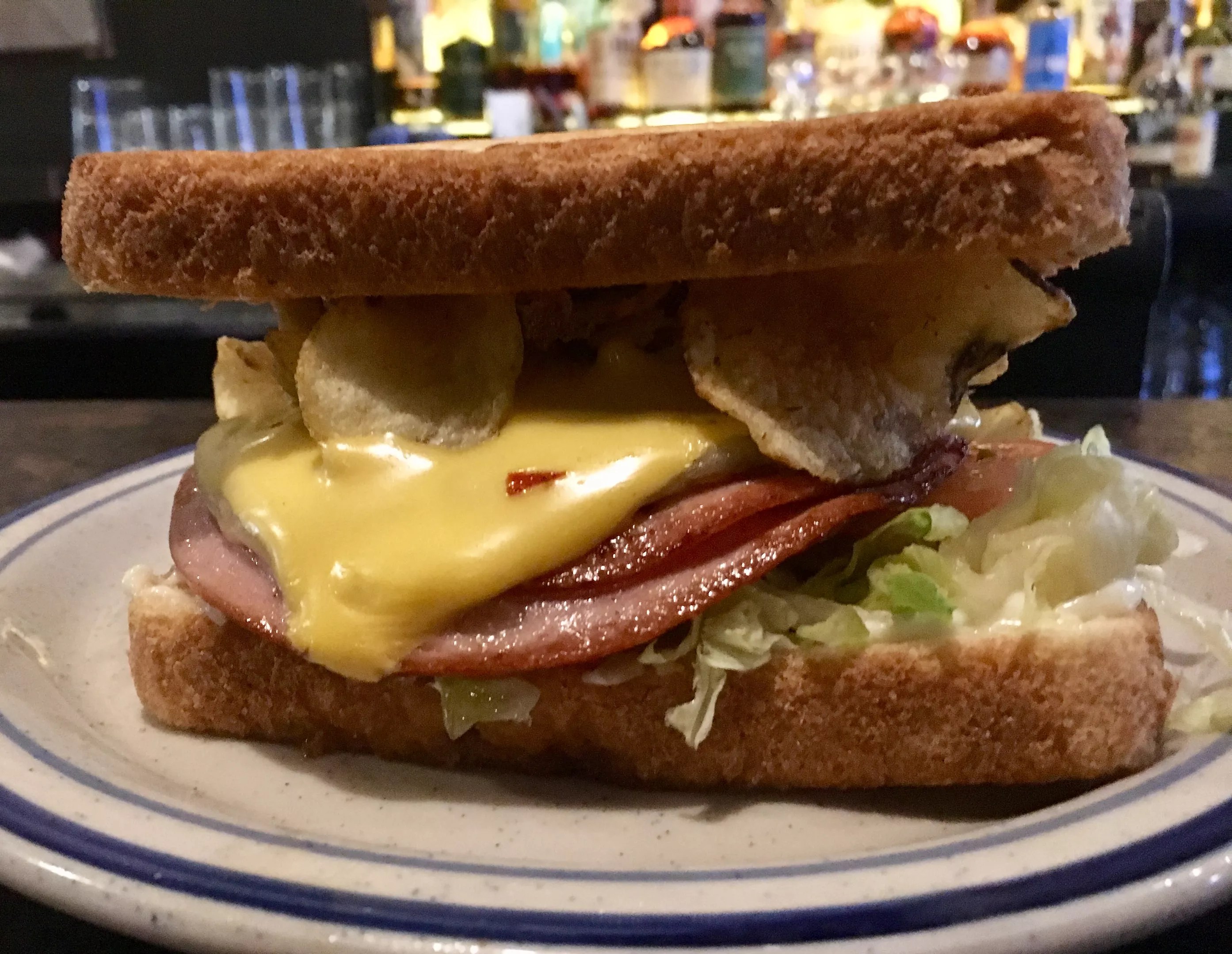 Haute Sweet Patisserie Bologna smoked over Texas pecan wood and topped with a handful of Zapps dill-flavored potato chips for at the new Hillside Tavern in East Dallas Nick Rallo