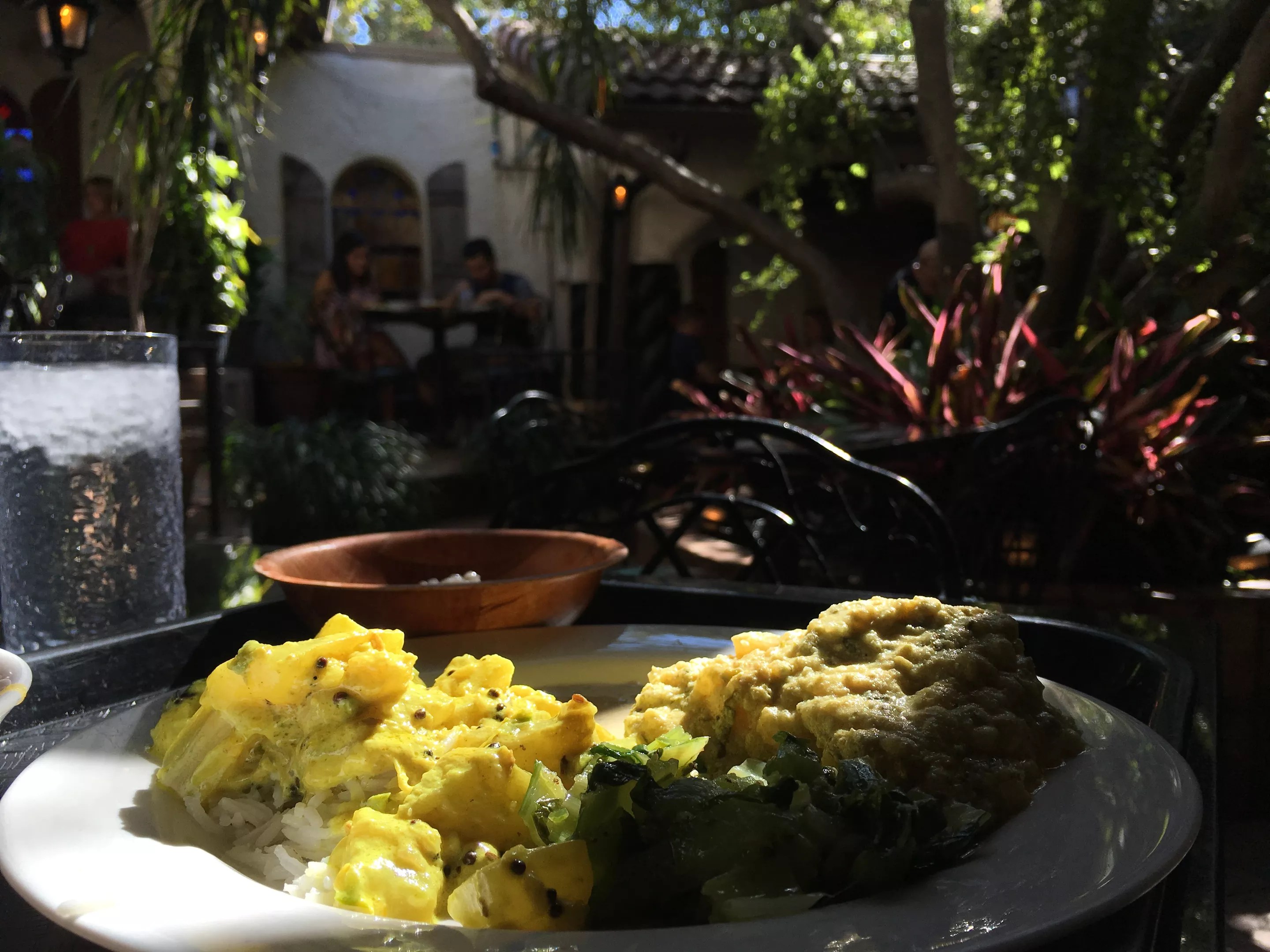 17194 Preston Road, No. 102 If you wanted proof that just about any food can be Indian-flavored with the right ingredients, this it is. While Hot Pizza Dallas also makes your classic cheese and pepperoni, a majority of the menu draws on Indian flavors. The butter chicken pizza comes with a spicy tikka sauce as its base and is layered with jalapeños, red onion and marinated chunks of butter chicken. The chana masala pizza is another palate-pleaser, topped with spiced chickpeas and a creamy tomato-onion gravy. A fair warning: there’s a reason that this place is called Hot Pizza. Spice is no joke here. One of Kalachandji’s best features is a gorgeous courtyard, a perfect setting for a healthy vegetarian meal. Beth Rankin