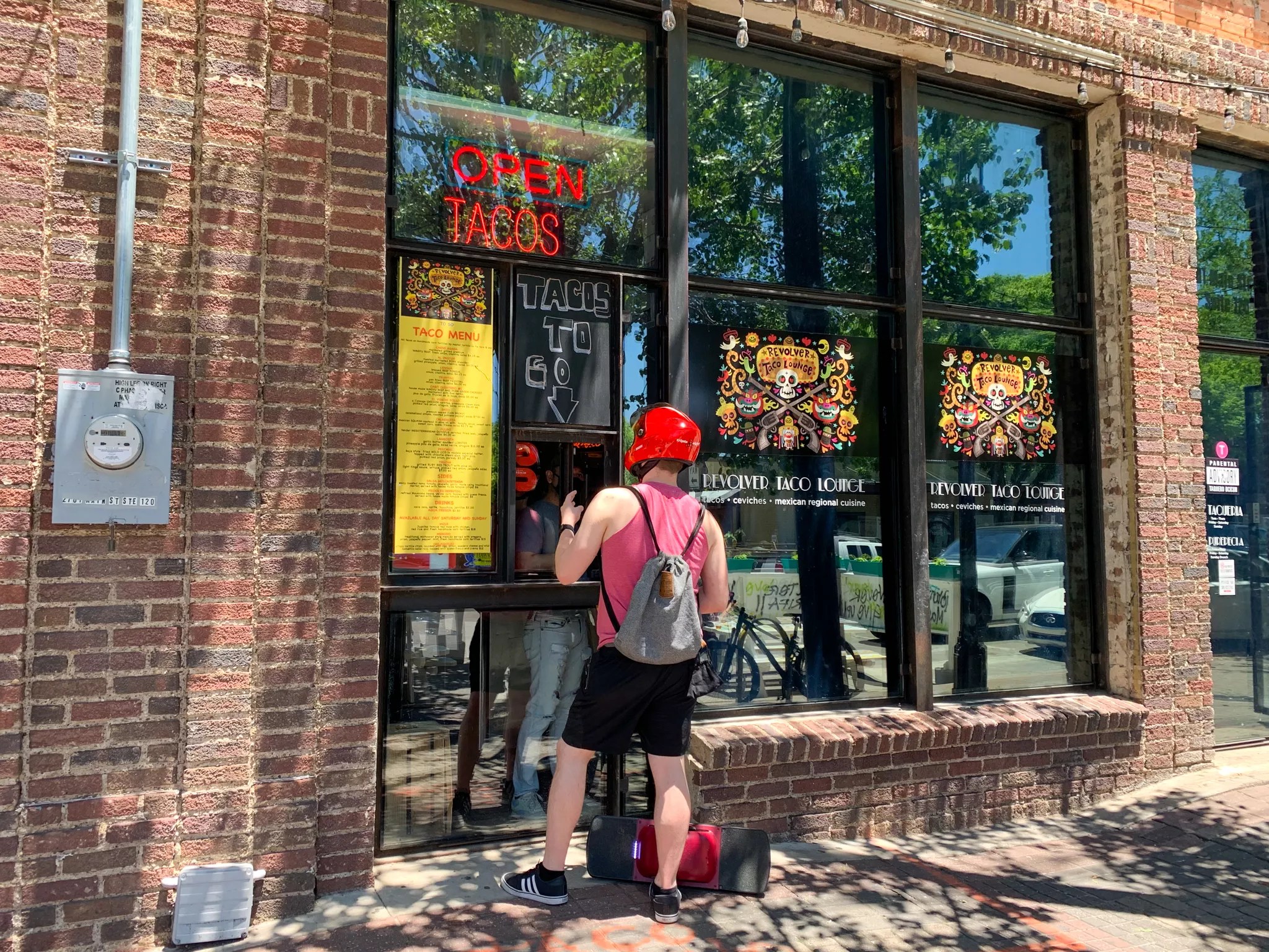 Revolver’s open for takeout right now, conveniently through an exterior window.