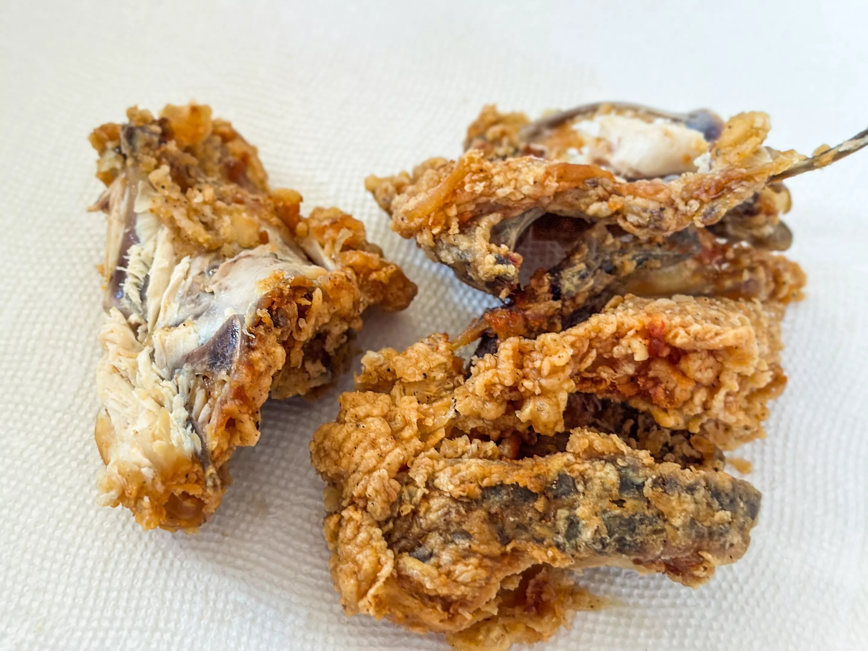 These are the “bones” that come with your chicken salad. More than bones, they provide a wonderful snack of delicious meat and decadent crispy chicken skin.