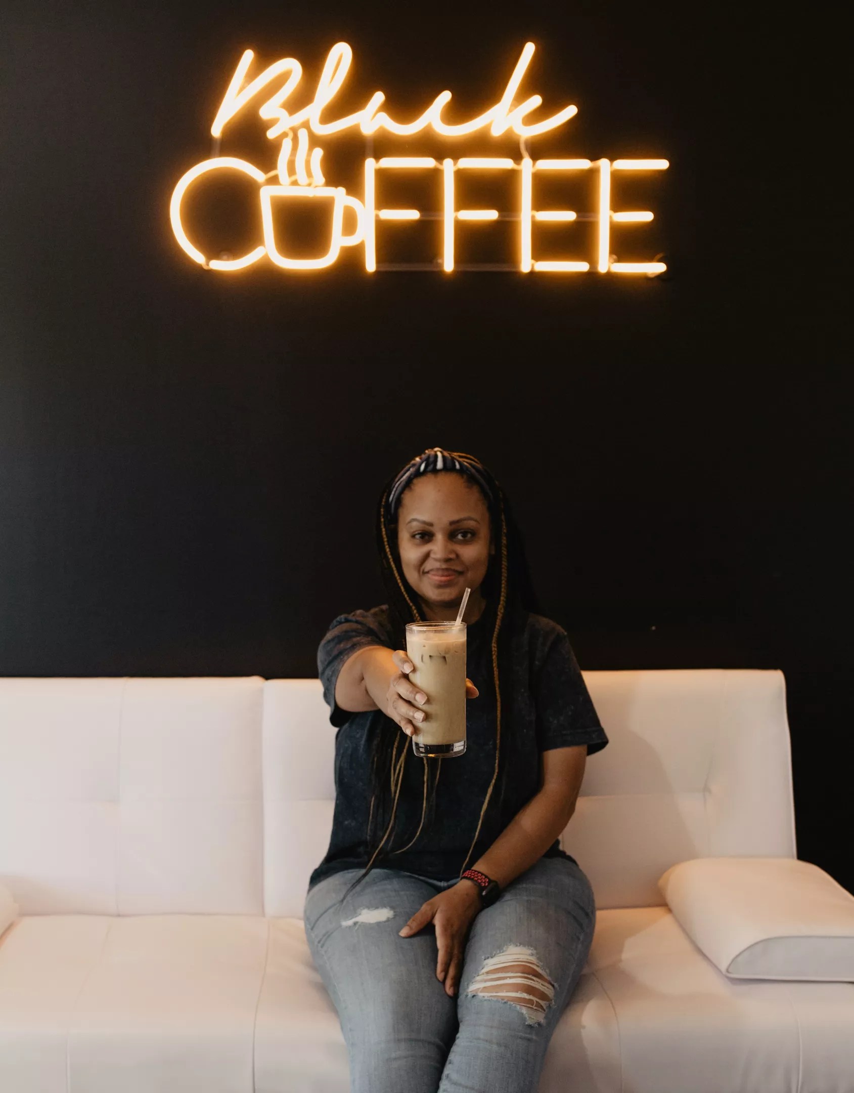 In another much-needed lifting of spirits, shortly after the February winter storm, gospel singer Kirk Franklin used the space to film a video. In the opening scene, Franklin asks Moss why her shop is called “Black Coffee.” She explains that her first experience with coffee was her grandparents drinking their coffee black, then adds, “I’m a black woman in a black neighborhood, so it just fit.”