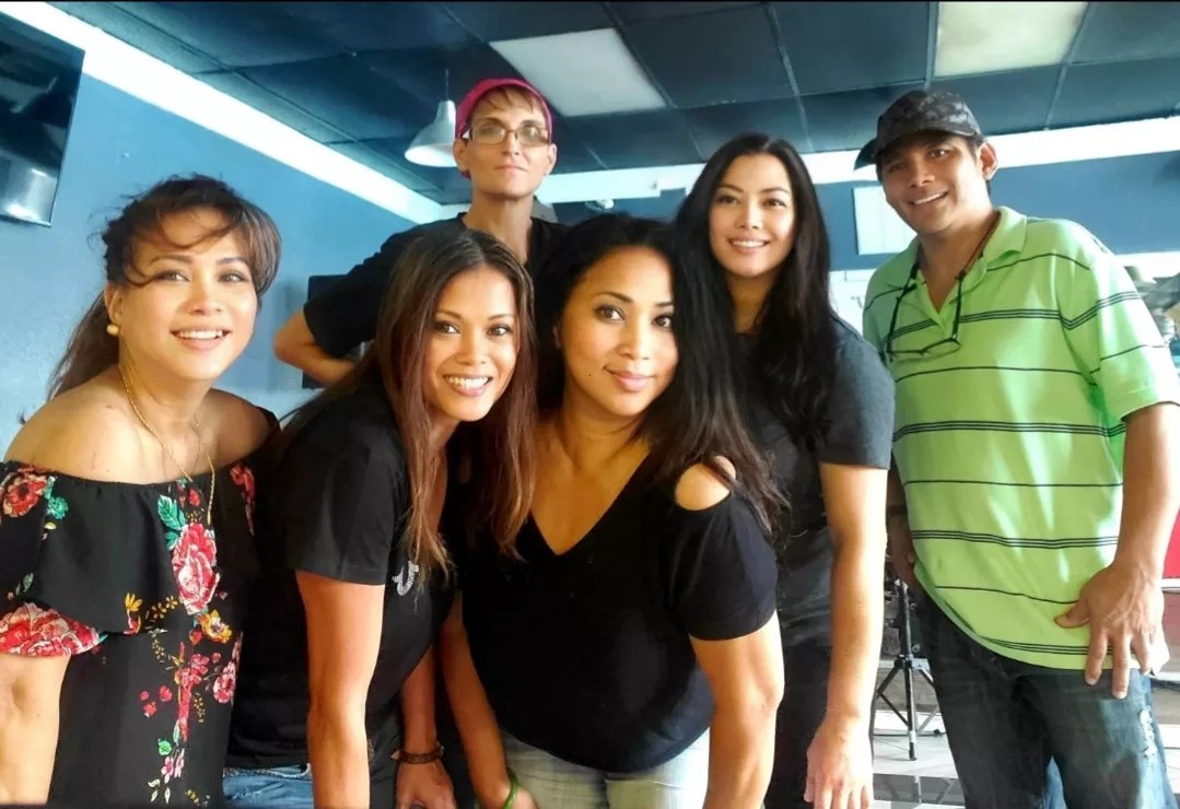 Head chef and owner Vilma Rice (center) with the Kanin team: Carmen Panares (sous chef). Ti-ay (bartender), Sherrie Hoskins (sous chef), May Ann Echaore (chef and co-owner), and John Panares (DJ).