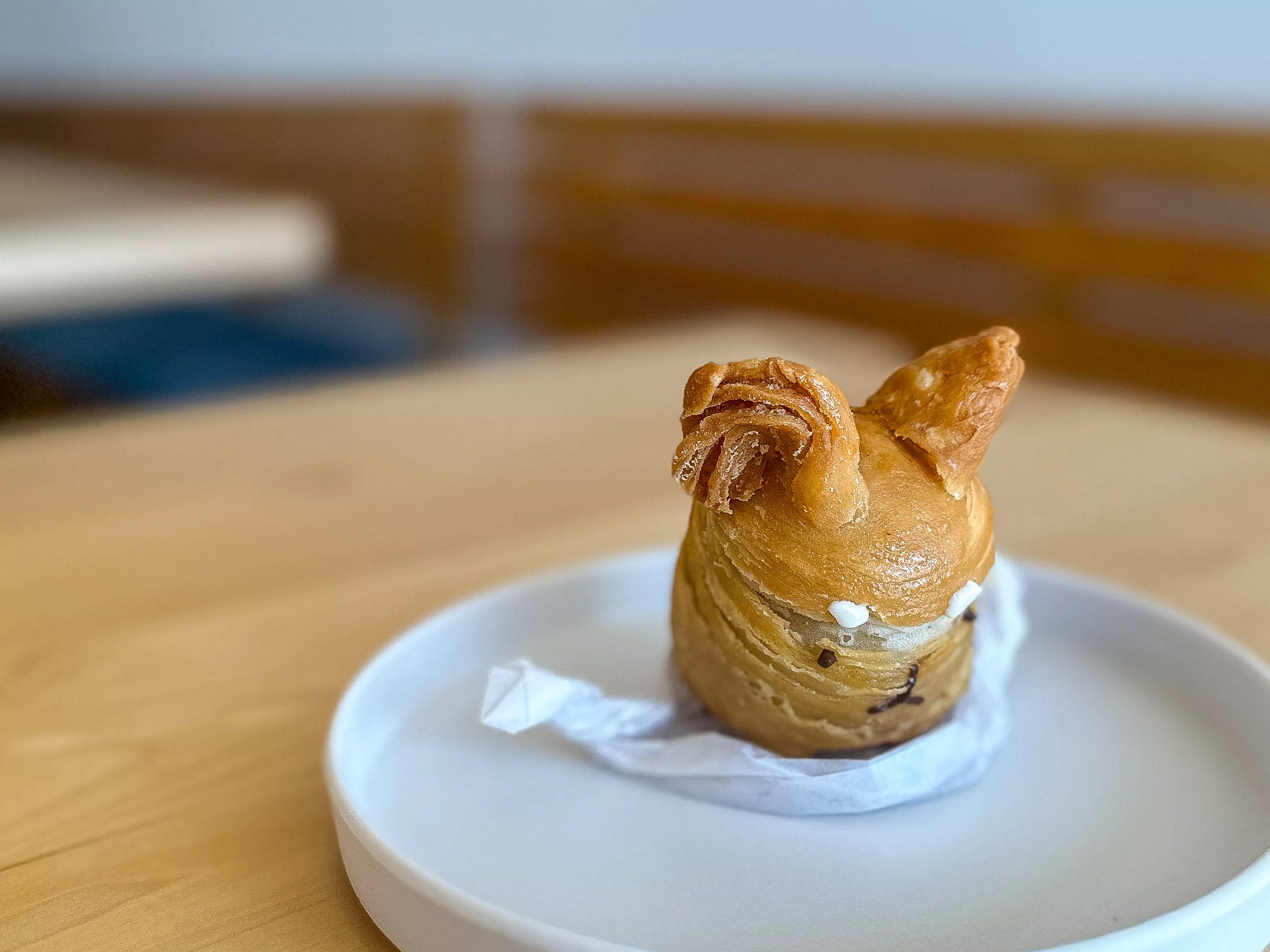 We went with the pork and taro pup pie, a small, slightly sweet croissant-like flaky pastry filled with ground pork that can be accessed by lifting off the top that is the pup’s ears. Almost too cute to eat, but you’ll be glad you did. It’s easy to see why this is such a popular item.