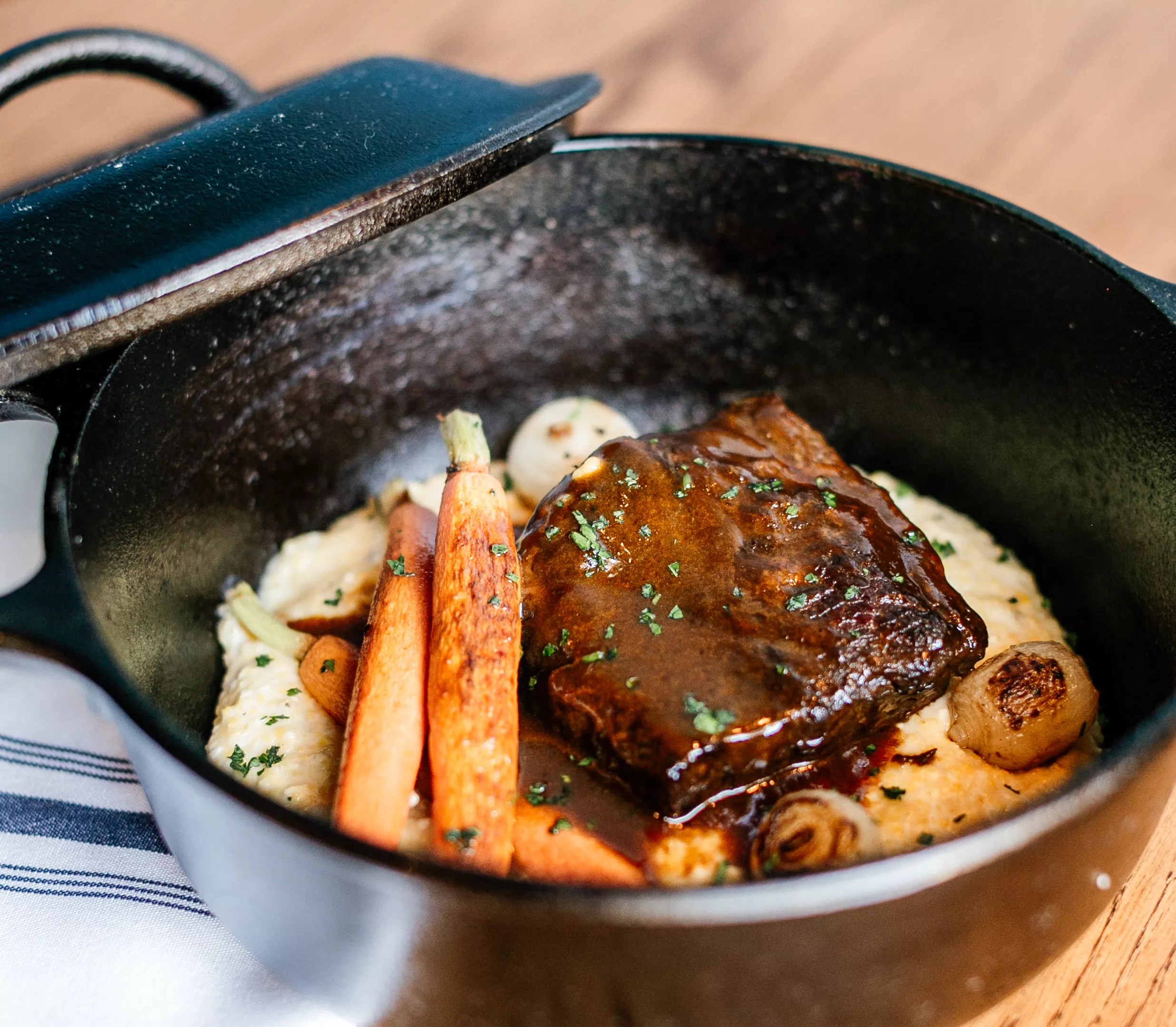 A brunch menu also lists a Guinness-braised short rib Benedict and wagyu corned beef hash.