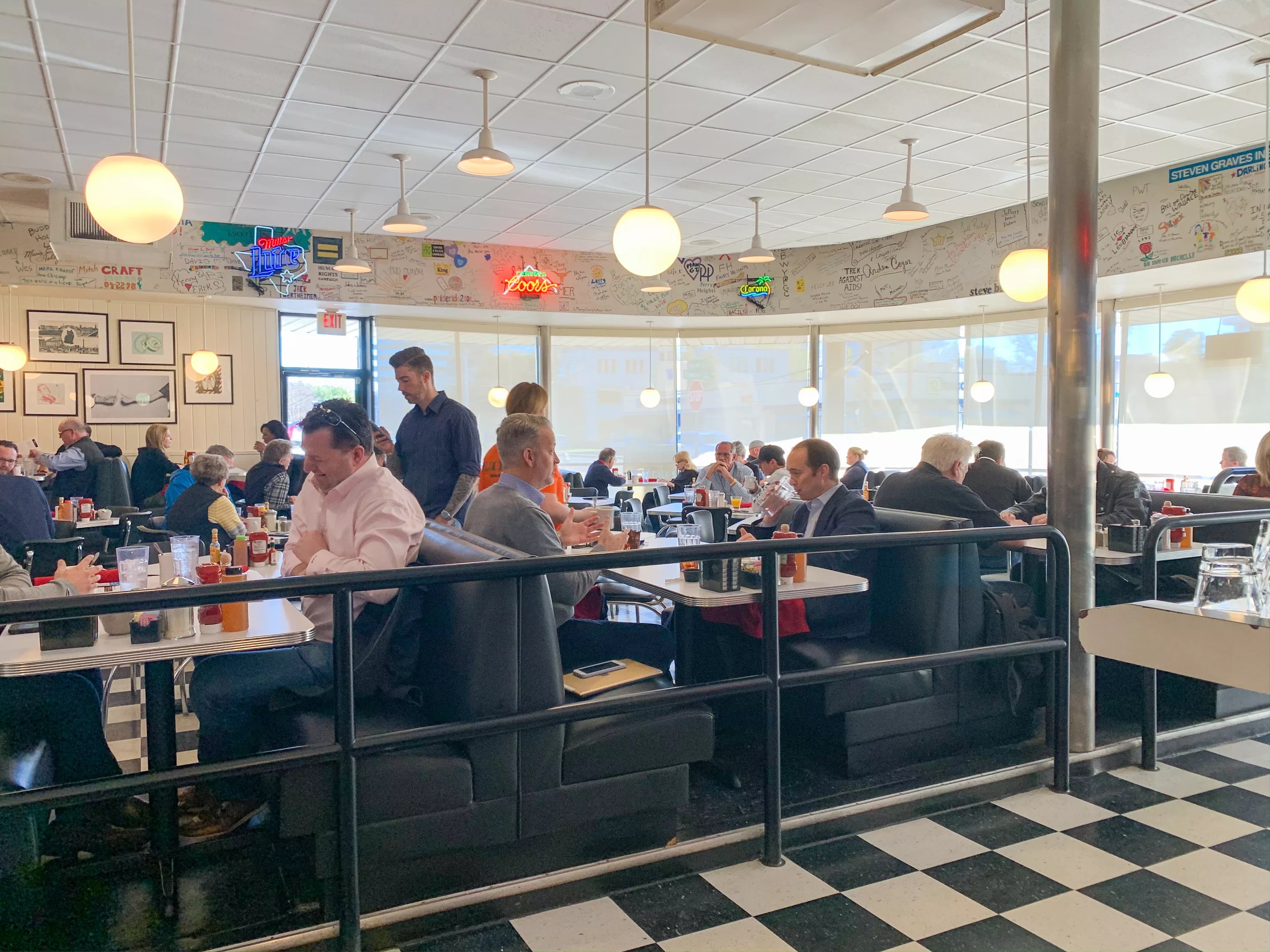 The coffee’s just fine, providing enough caffeine for the day every time a server comes by with that generic pot to warm up the cup. (And on a recent visit, there was at least one person who was serving here more than 10 years ago.)