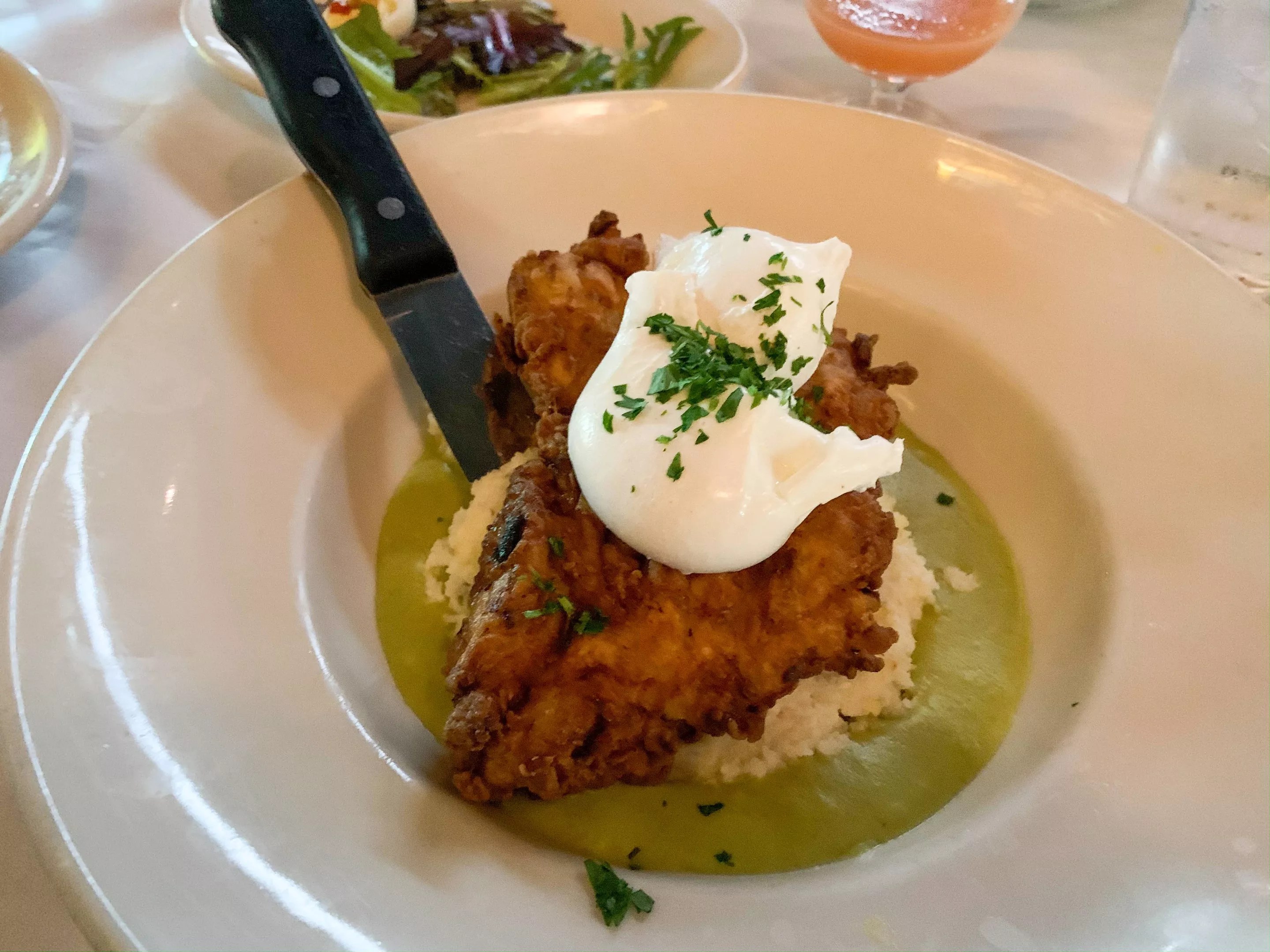 Despite its name, the mother and child reunion was a better choice ($16). A crispy chicken breast has nice breading, one that falls off easily from the meat, and is topped with two perfectly poached eggs. Below are homestead grits – so dry and firm that we were surprised they made it out of the kitchen – and jalapeño gravy that complemented fried chicken well.