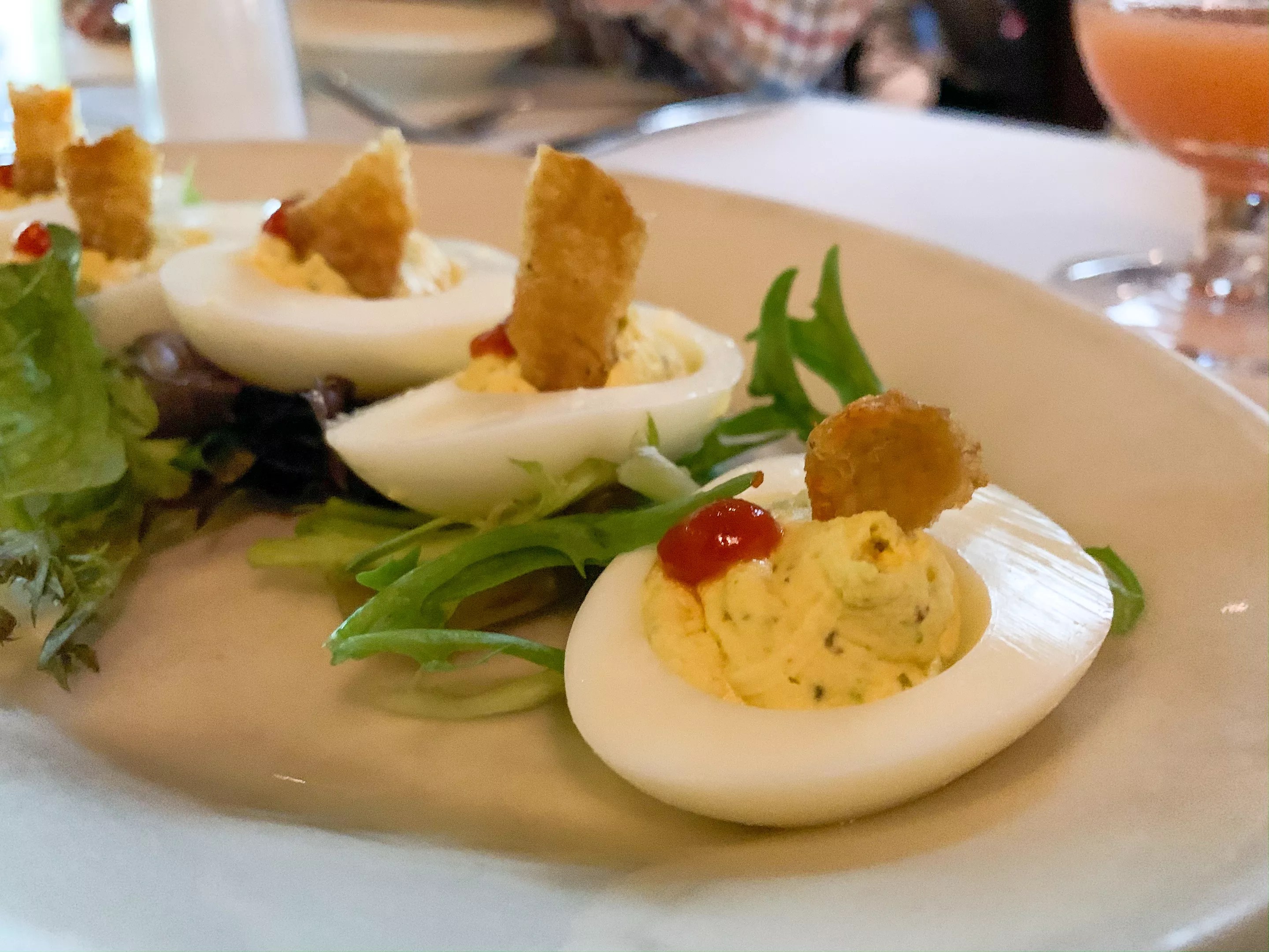 Take the Nashville hot devils: cage-free eggs, whipped filling (vague), spiced chicken skins and hot sauce ($11). What comes out are simple deviled eggs with basically a crumb of skin. The presentation doesn’t make you want one, and the flavor doesn’t make you want two. You won’t spit it out or anything, but you will wonder what the point is.