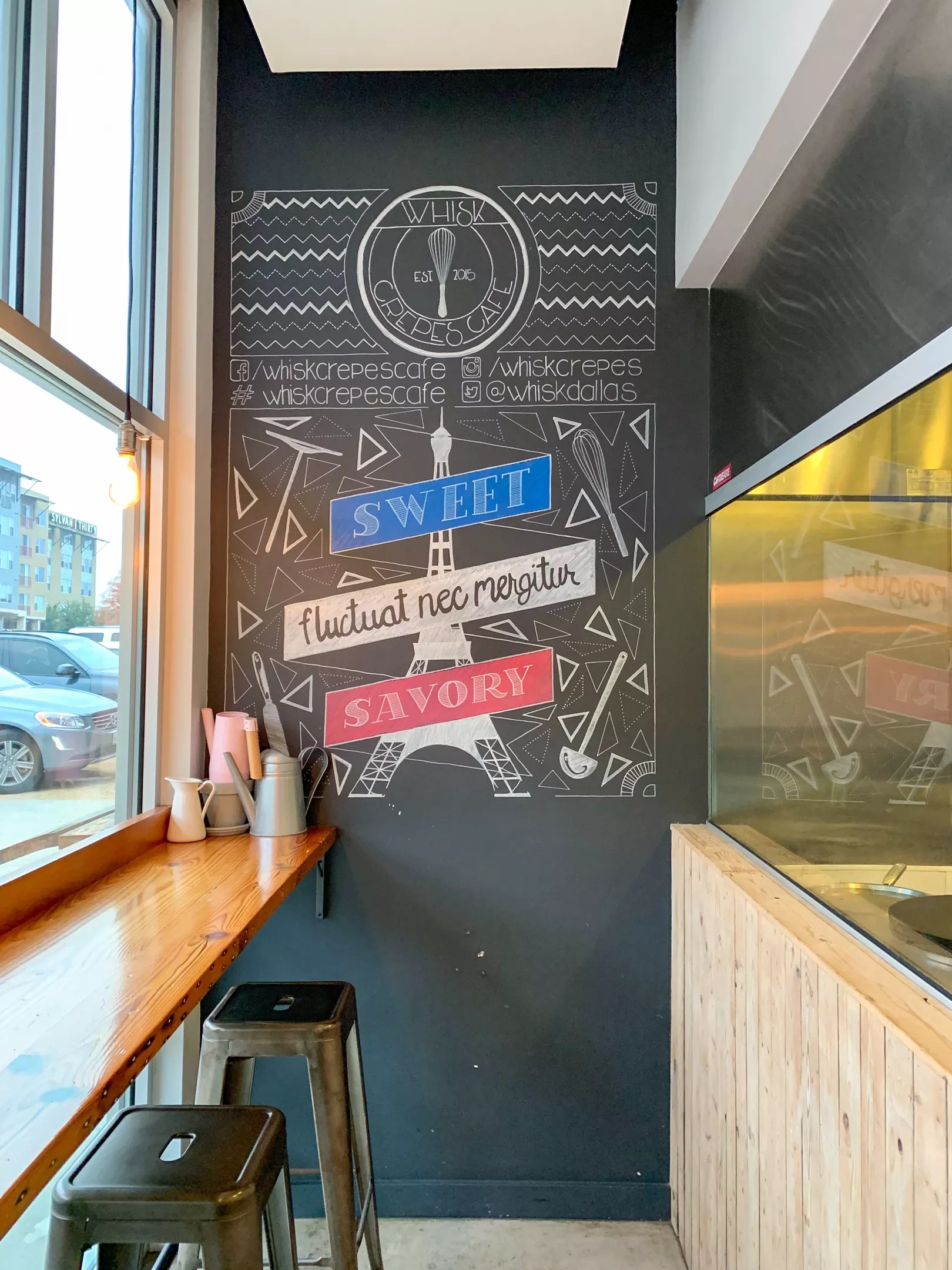 Whisk Crêpes Café opened in 2015 in the Sylvan Thirty development. This corner in West Dallas was new and shiny when it opened the year before, contrasting in style to the Belmont Hotel that’s kitty-corner. (I remember it well since West Dallas was my beat at the time.) After its first tenant in 2014, Cox Farms Market, we saw more tenants come in (and lots of people jump for joy when Tacodeli joined), then we’d later watch more multifamily spaces come in just down Fort Worth Avenue.