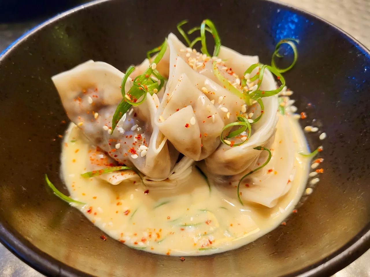 We wanted to try items from different regions, so we started with the Egyptian spiced lamb skewers ($15), which are probably best shared with others. These massive scrumptious spheres are made with dukkha spiced ground lamb, sesame seeds, pink peppercorn and pork, even though the latter is not traditional meat found in lamb dishes. These balls of lamb come with a small smear of mild labneh sauce, which is a Middle Eastern cheese made from strained yogurt. The lamb was cooked exceptionally well for the Texas-size portion, we just wish there was more of that savory sauce to accompany it.