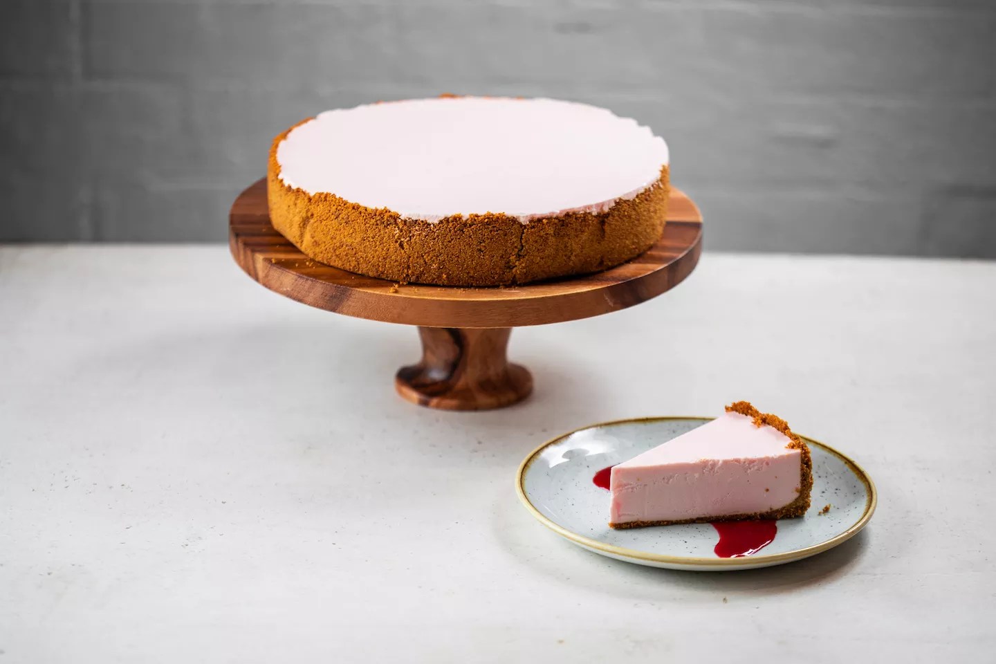 Rosé cheesecake is a swanky way to end a holiday meal, made with Vine Huggers rosé and a graham cracker crust.