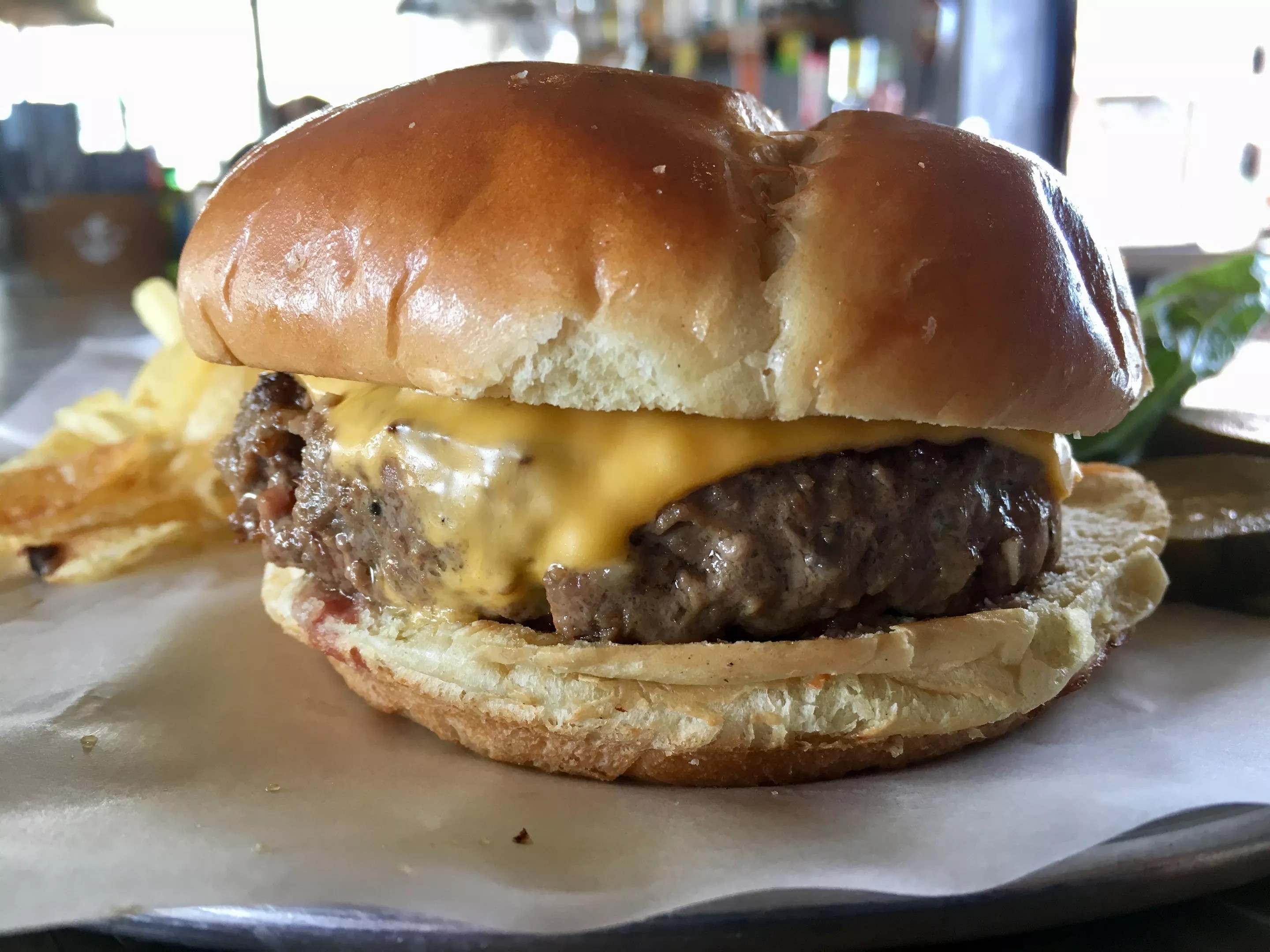 The single cheeseburger at Cold Beer Co., with a Wagyu-style beef patty that's been blended with bacon, is $8.