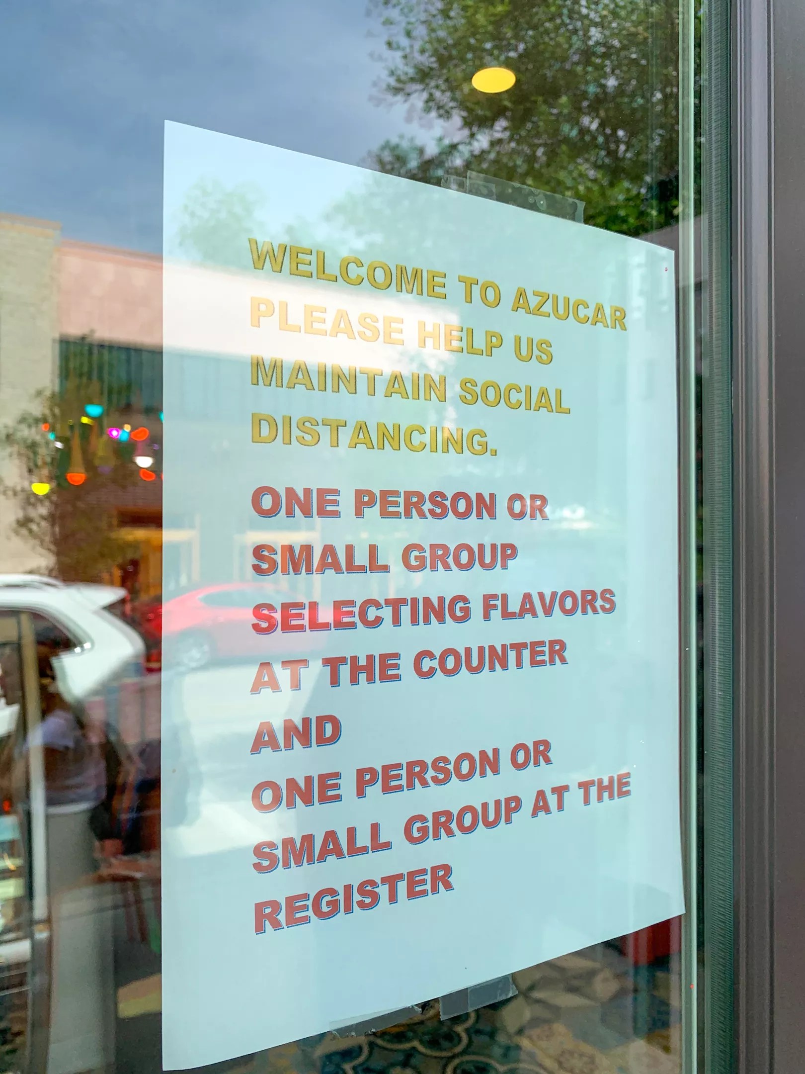 Also at Azúcar, only two groups at a time can be inside – and by group, she means just one person or one small group – one in front of the ice cream counter and the other around the corner at the register.