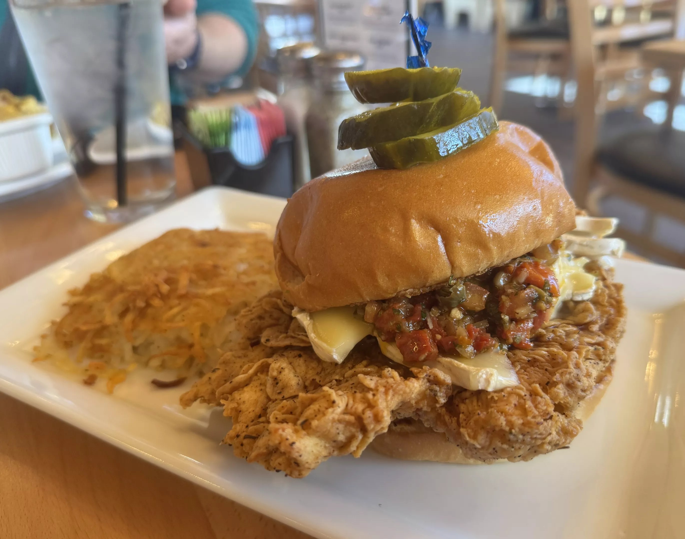 The chicken sandwich with brie and a sun-dried tomato-caper relish.