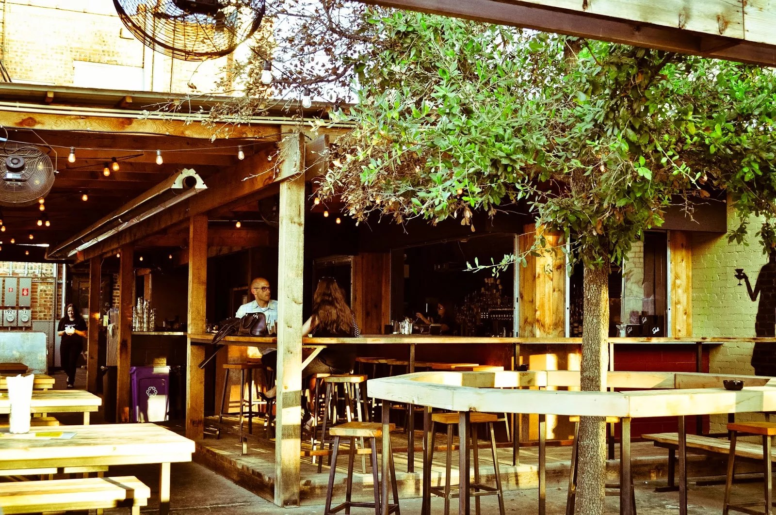 For some bars, it’s just a matter of adding fans and misters to their covered patios. For others, it’s all about creating shade with trees or canopies. Some bars offer refreshing large-format cocktails (like the Standard Pour’s massive four-person Moscow Mule) to entice patio diners on a hot day.