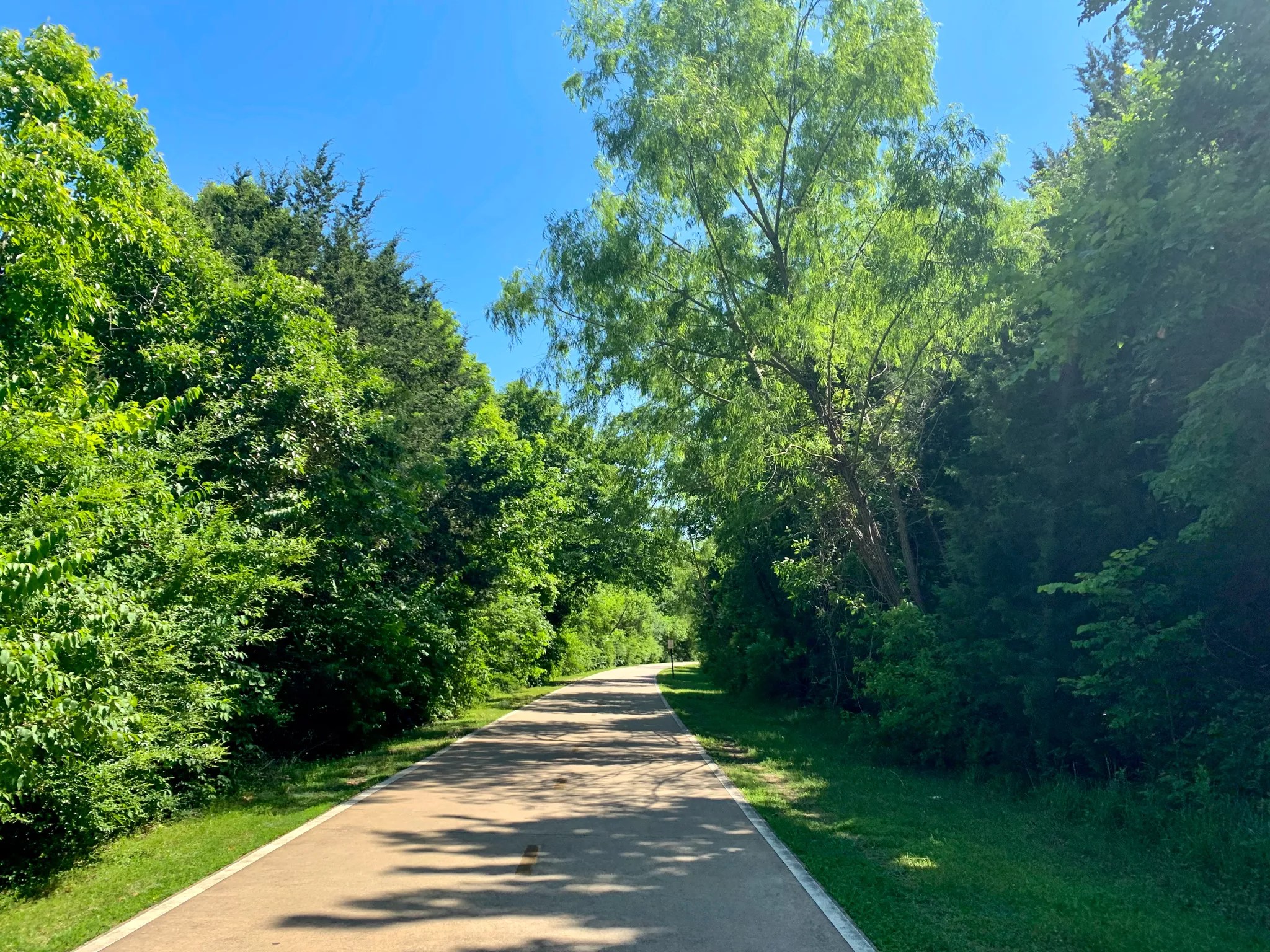 If that’s just too much on-street for you, cut across Monticello Avenue or McCommas Boulevard to pick up the far north end of the trail. Then it’s all the way down the Katy to almost the very end. Cut off on the secret exit that leads to Victory Overlook just past the Alexan apartments.