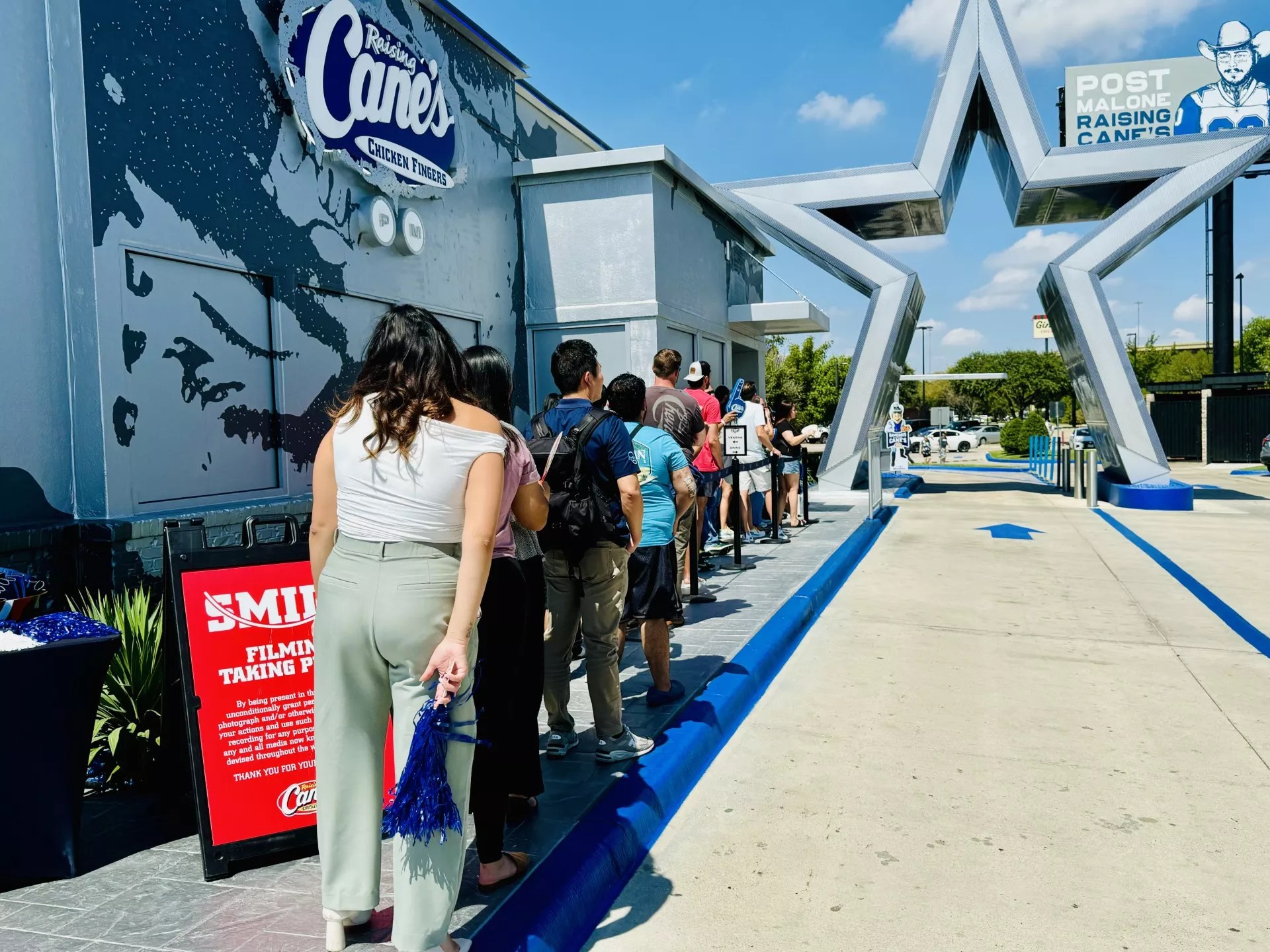 Just a normal day at Raising Cane’s where one of the best linebackers on earth and a couple of Dallas Cowboy cheerleaders take your order.