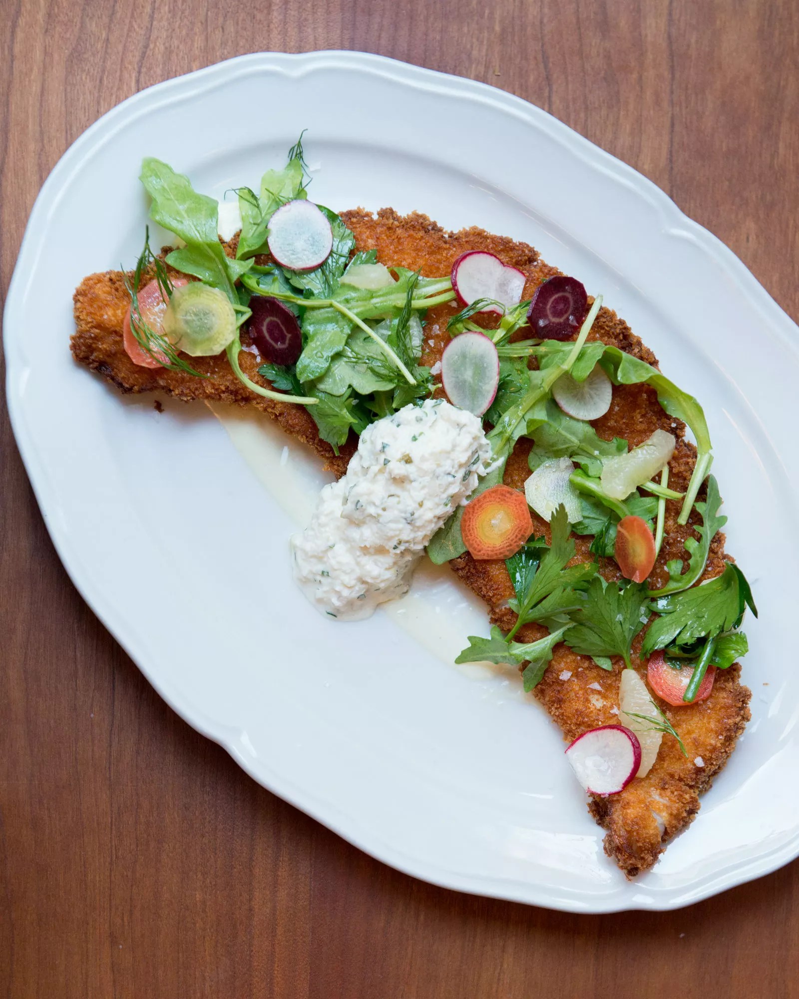 True, the kitchen sometimes gets overexcited. The venison tartare is thick-cut and boldly flavorful – who can say no to fried shallots? But a dining companion with ranching relations complained that the shallots, spices and egg yolk mask the flavor of the venison itself. Similarly, the hot quail, with its crispy-battered edges, legit-but-not-lethal heat and “pickle biscuits” (the pickles are inside the biscuits), is only distinguishable from hot chicken in that quail is smaller.