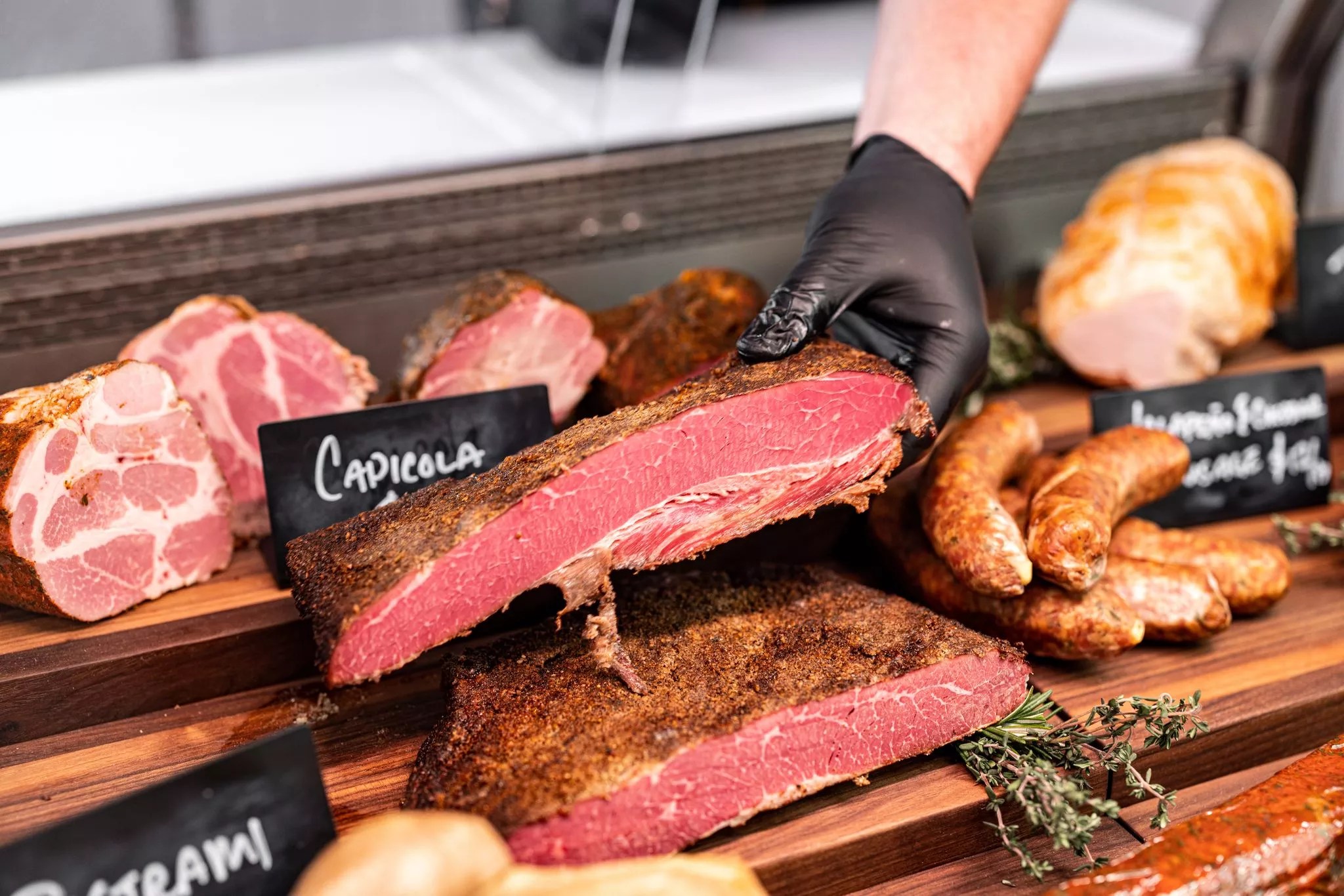 In addition to whole rib racks and steaks, Evan's also carries pastrami and other cold cuts.