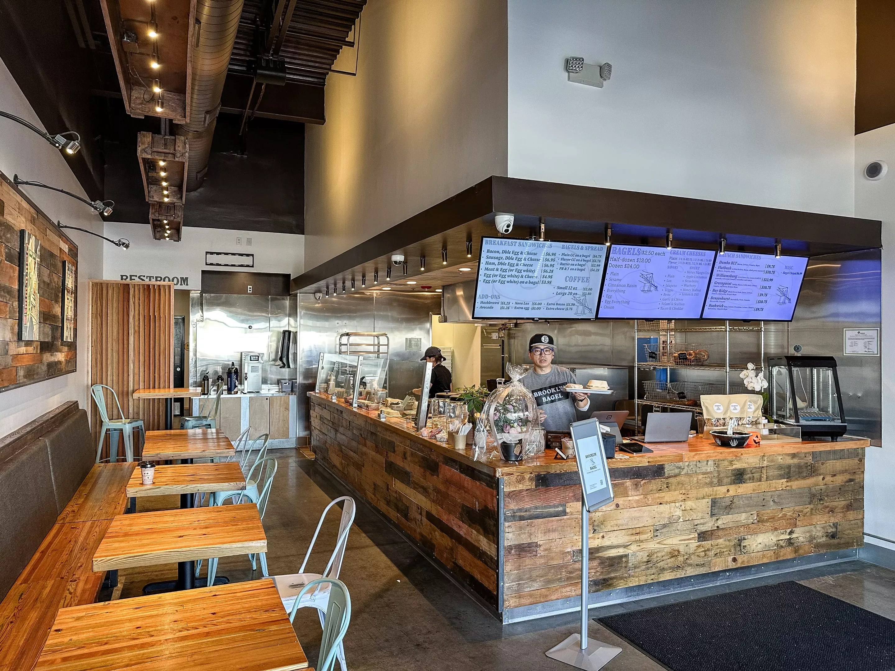 The small well-lit space offers breakfast and brunch sandwiches, muffins, several types of bagels and schmears.