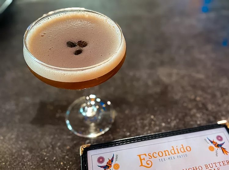 Escondido does a slight variation of the carajillo. They use cold brew rather than espresso and Licor 43, then add copa de oro (coffee liqueur), 100% blue agave and Jalisco orange. It gives it a lighter coffee flavor and a more complex finish.