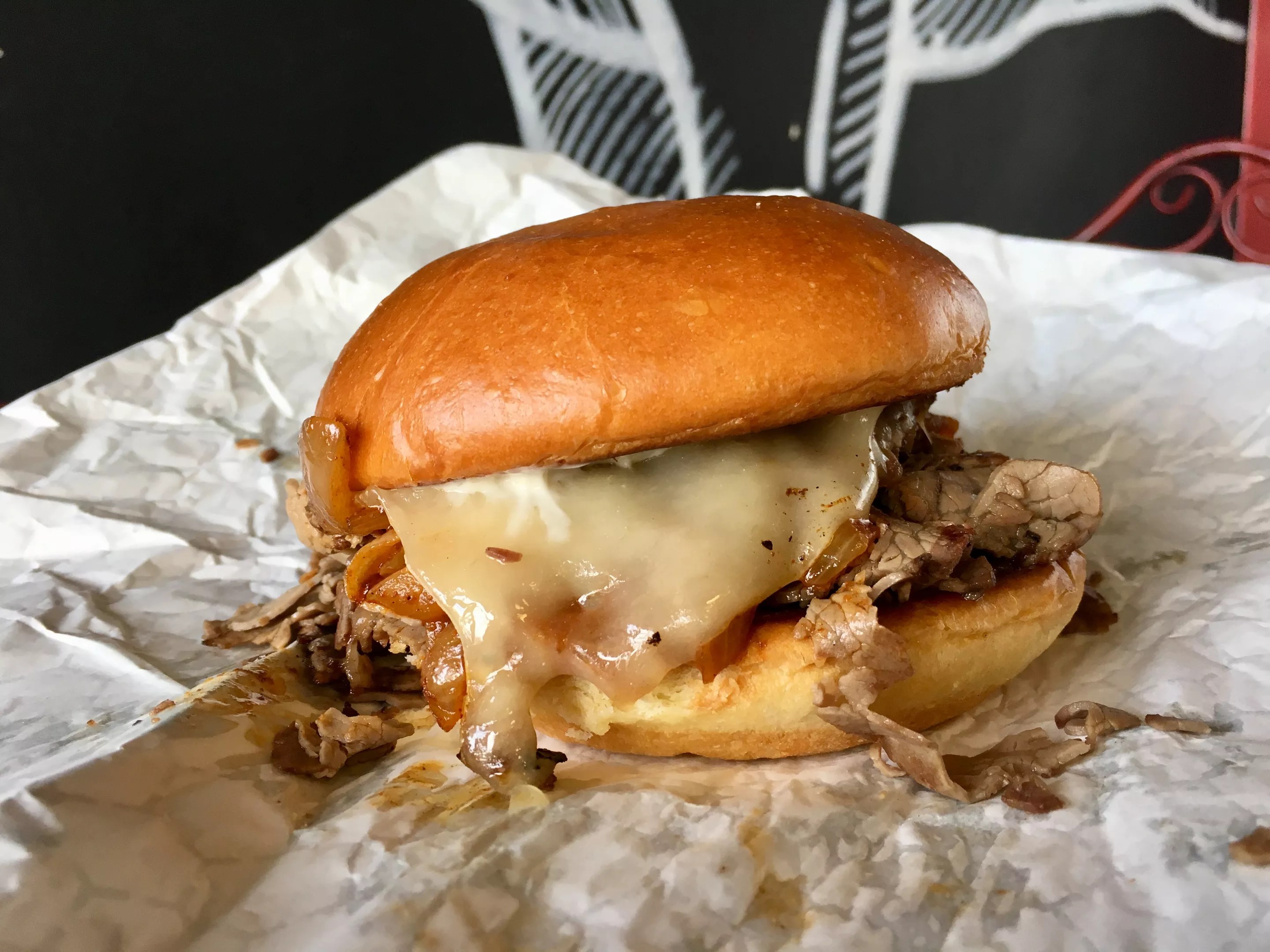 Shaved beef tenderloin, Monterey Jack and paprika-dusted onions at One90 Smoked Meats for $15.