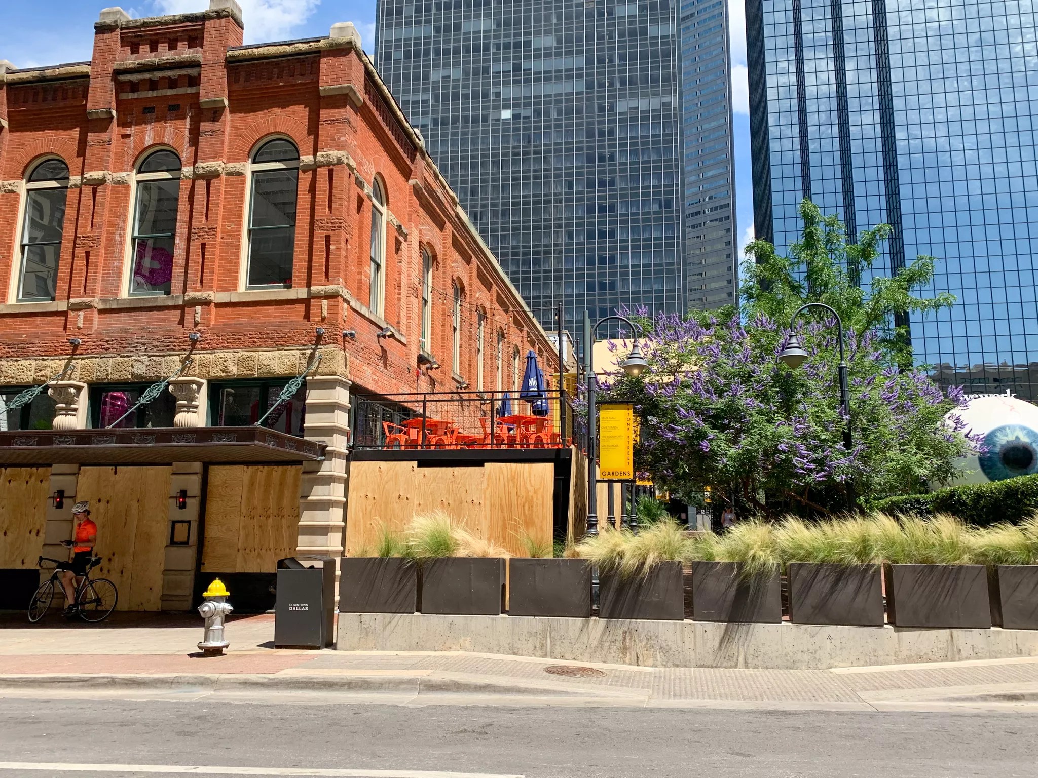 Over in Deep Ellum, businesses such as Revolver Taco and Easy Slider appeared safe and untouched – at least without broken windows on the facades. In other parts of the neighborhood, boards over broken windows at places such as Murray Street Coffee and AllGood Cafe now greet customers and passersby.