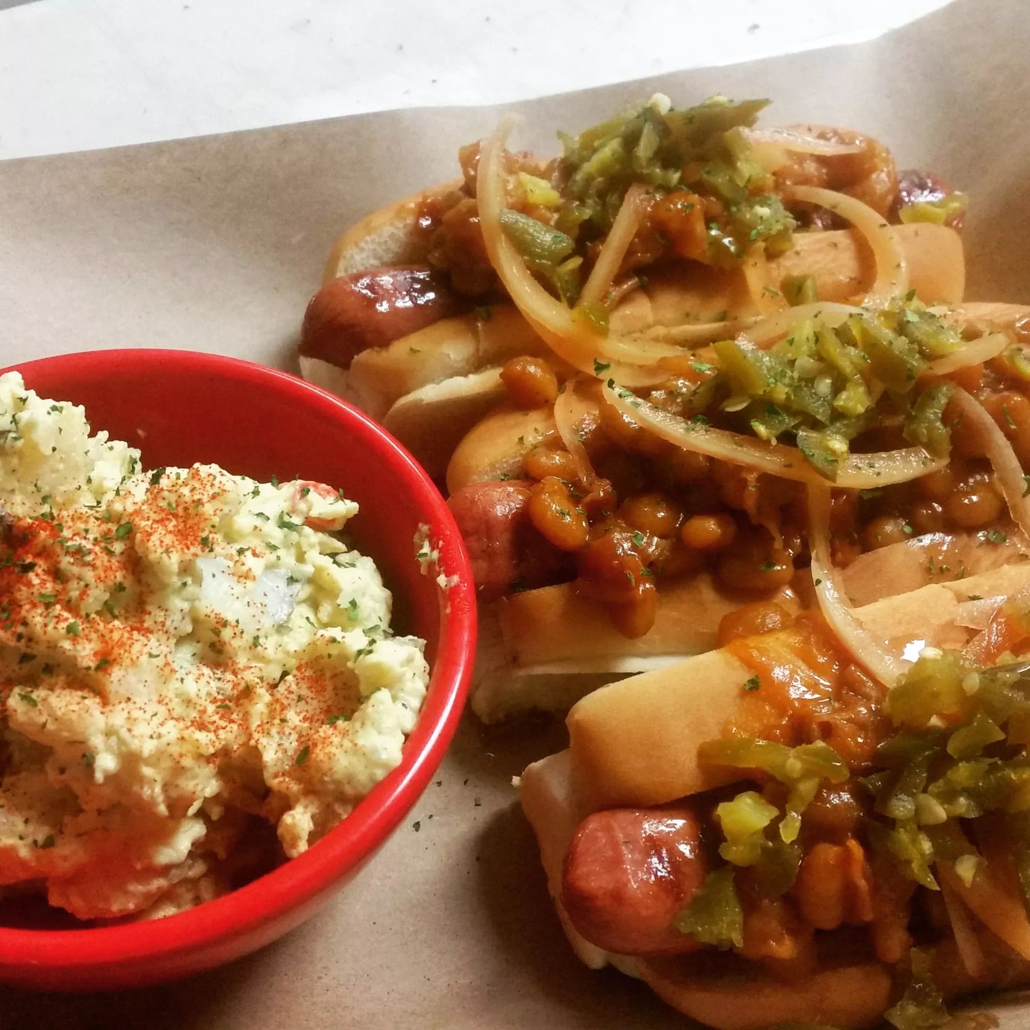 The Snoop Dogg Pack: Each dog is topped with bacon, baked beans, pickled jalape