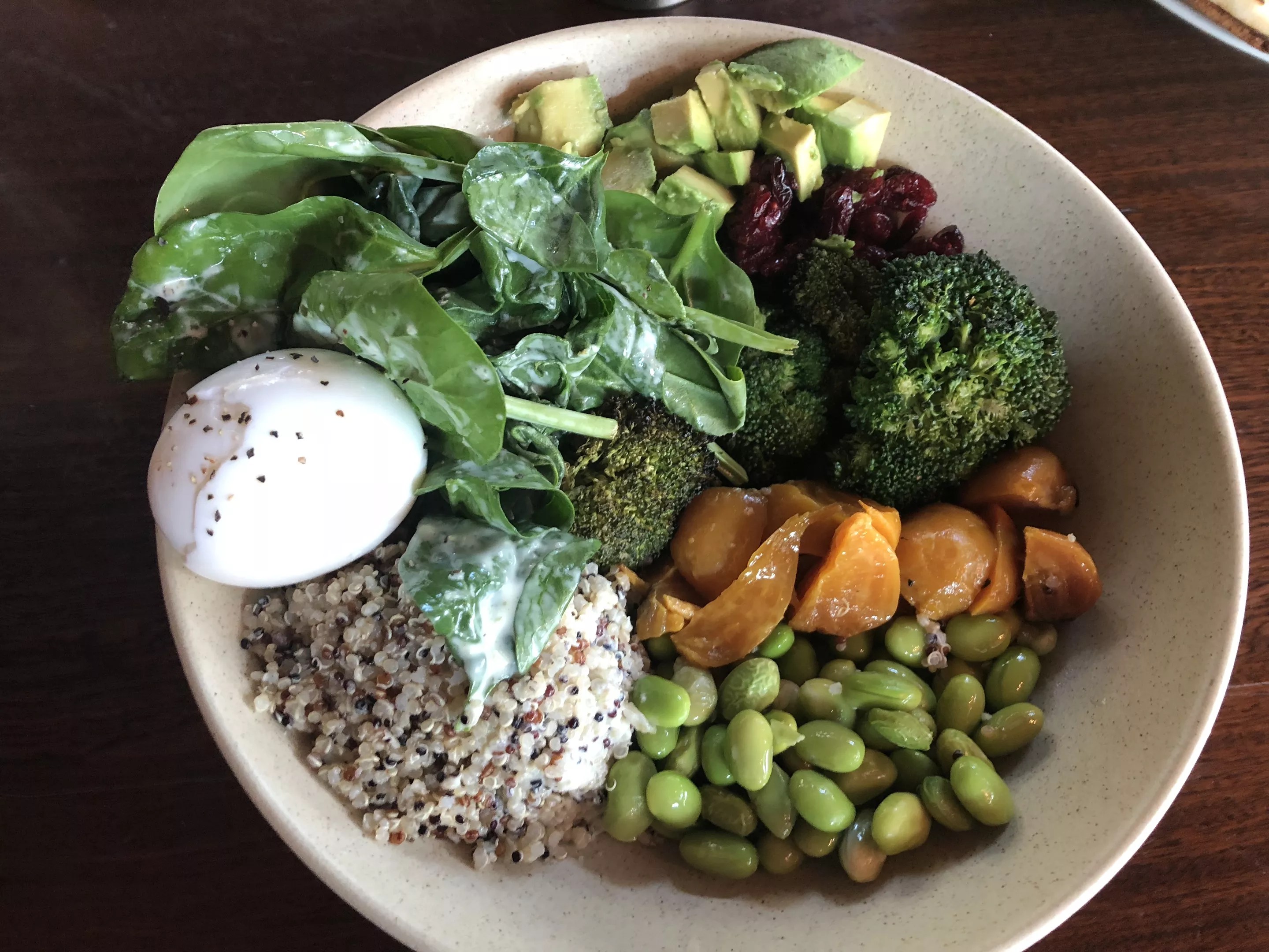 If you’re looking for something healthier, the greens and grains bowl ($14) is a good choice, with quinoa, charred broccoli, baby spinach, edamame, beets, avocado, dried cranberries, roasted almonds, a poached egg and basil dressing. Most everything – all piled into their own little mounds in a large bowl – was good, though the broccoli could have been chopped more.