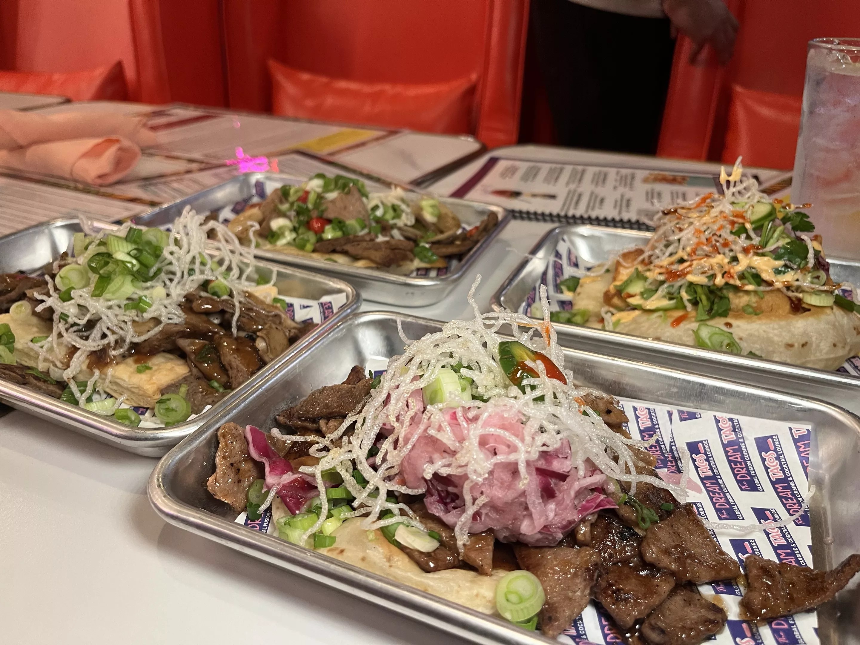 The Dream Tacos’ menu takes global influence to the extreme. Try the Indian-fusion tandoori chicken taco dipped in a white wine tandoori sauce or the Vietnamese Banh mi taco, which has classic banh mi ingredients nested inside a soft taco shell. A bulgogi Korean taco has thin slices of beef marinated in Chau’s specialty bulgogi sauce and crowned with chopped scallions.