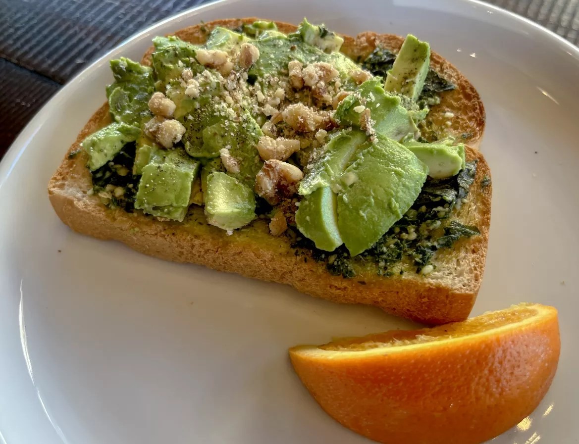 Another one of Duino’s popular menu items is the Avo X Pesto toast, a plate that adds a twist to the all-familiar flavors of American avocado toast. Like the quintessential brunch item, it starts off with chunks of mashed avocado topped with a drizzle of house-made pesto that adds a hint of tang to the buttery flavors of avocado. Roasted walnuts on top provide a layer of crunch.