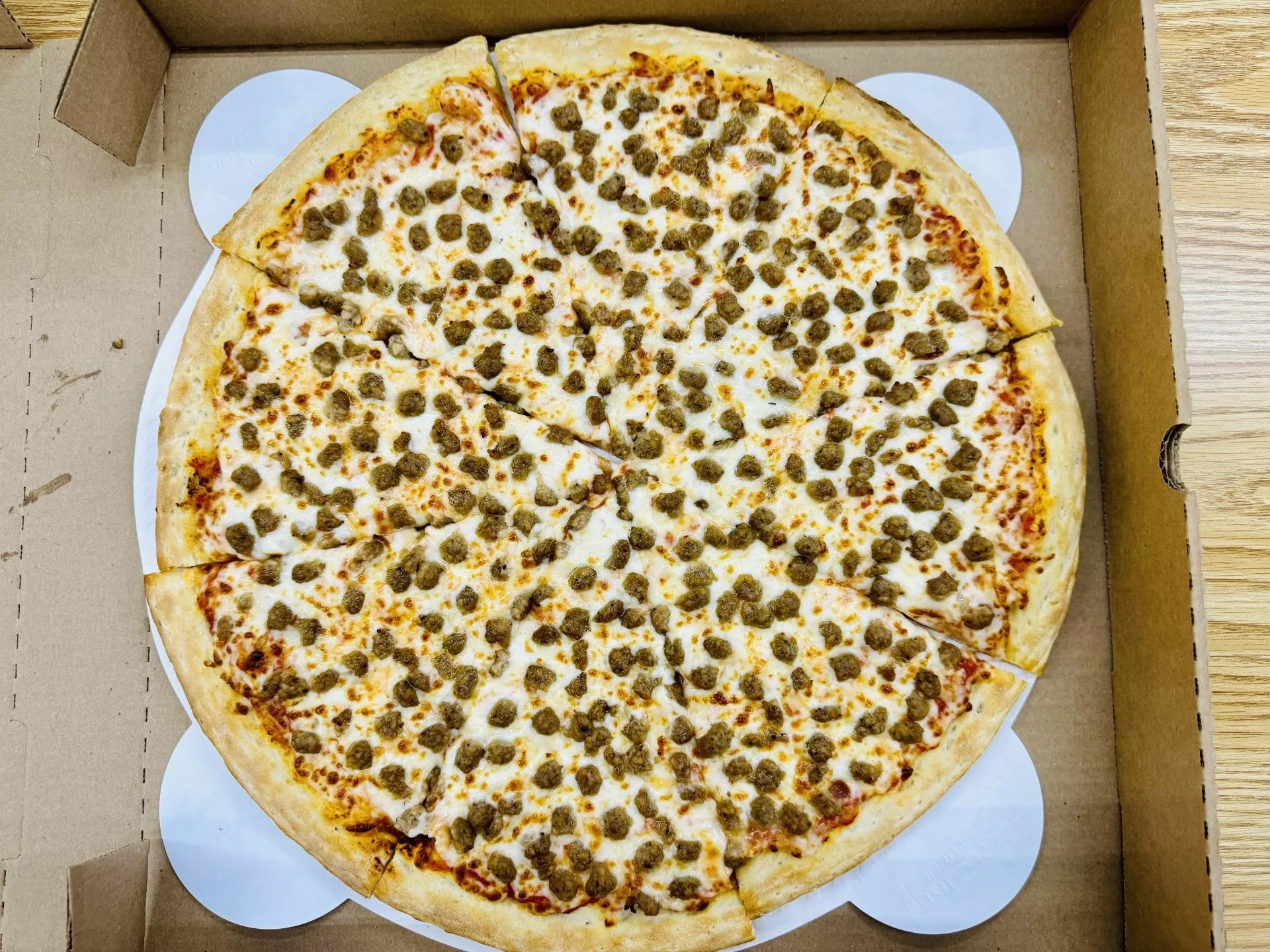 Big T Pizza’s sausage pizza.