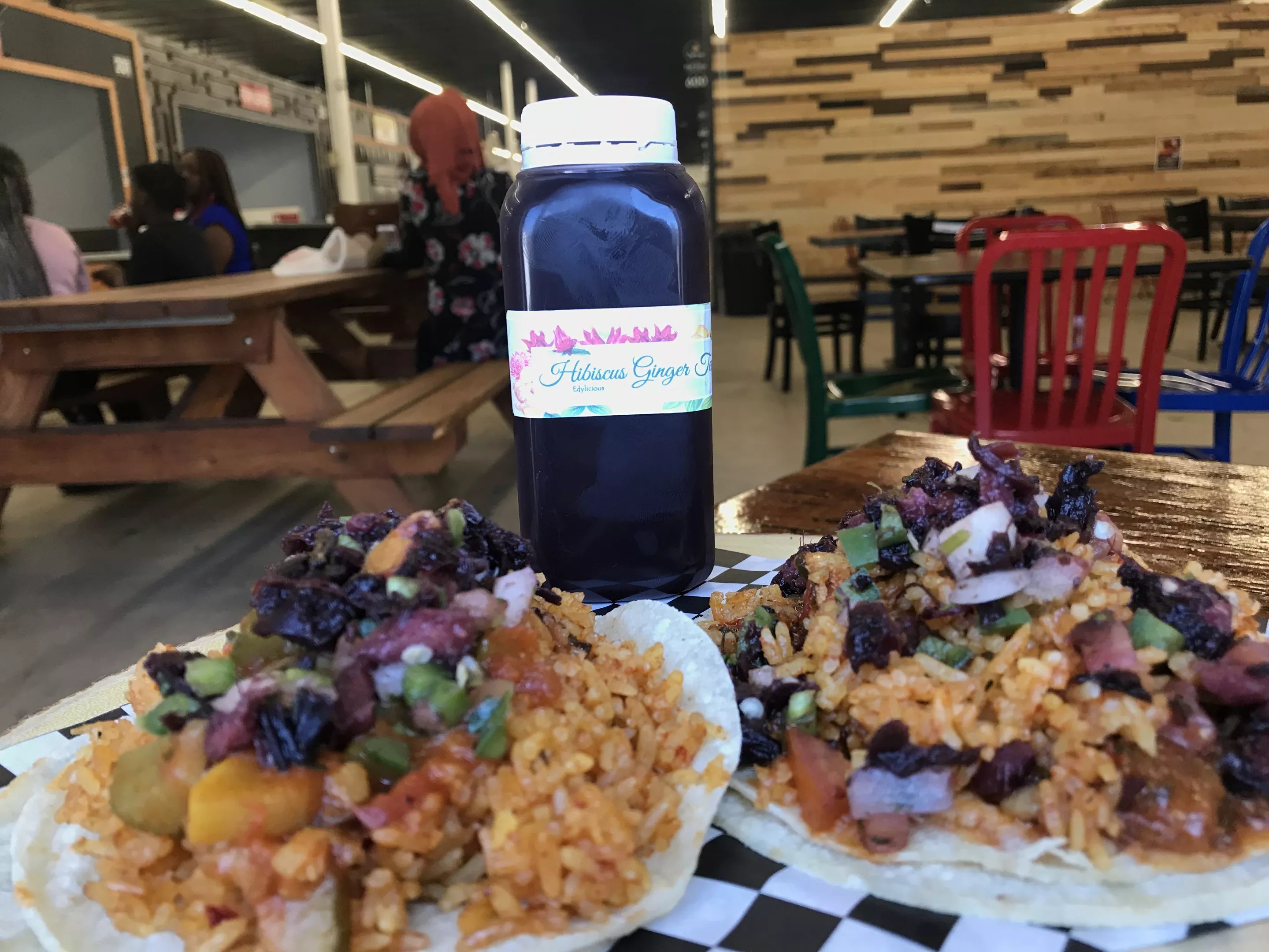 Each taco is topped with a hibiscus, pineapple and ginger salsa fresca, something Odu says takes the tacos’ flavor to another level.
