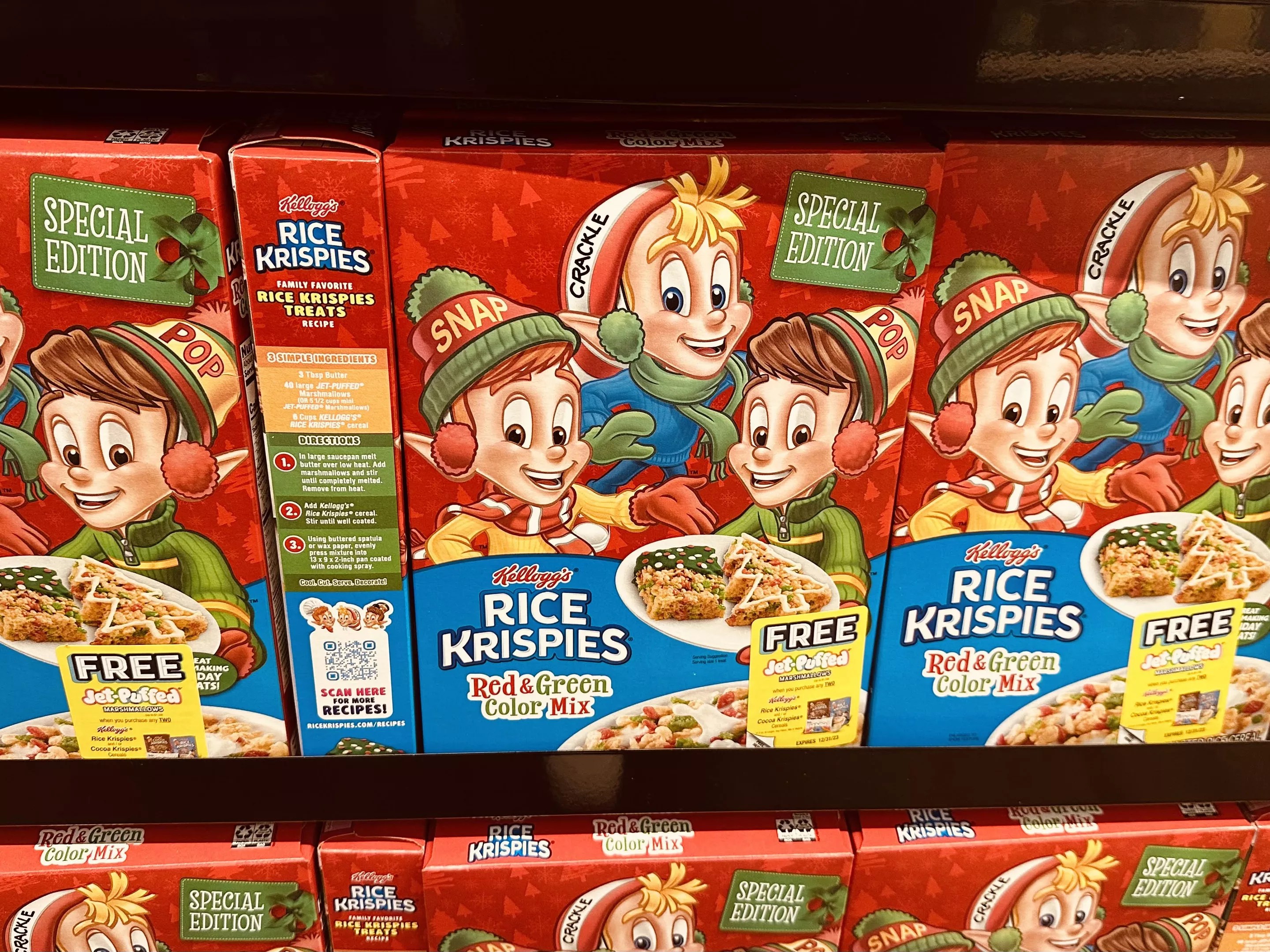 Seeing how Rice Krispies are used in many recipes, it makes complete sense that they would release red and green Krispies to save customers the trouble of dying them. What we feel the need to call out is the fact that at Walmart, the 10.3-oz. holiday variety box costs almost two dollars more than 18-oz. family-sized box. That much extra for a box where most of the cereal isn’t even dyed is outrageous. Color your own Krispies, Dallas.