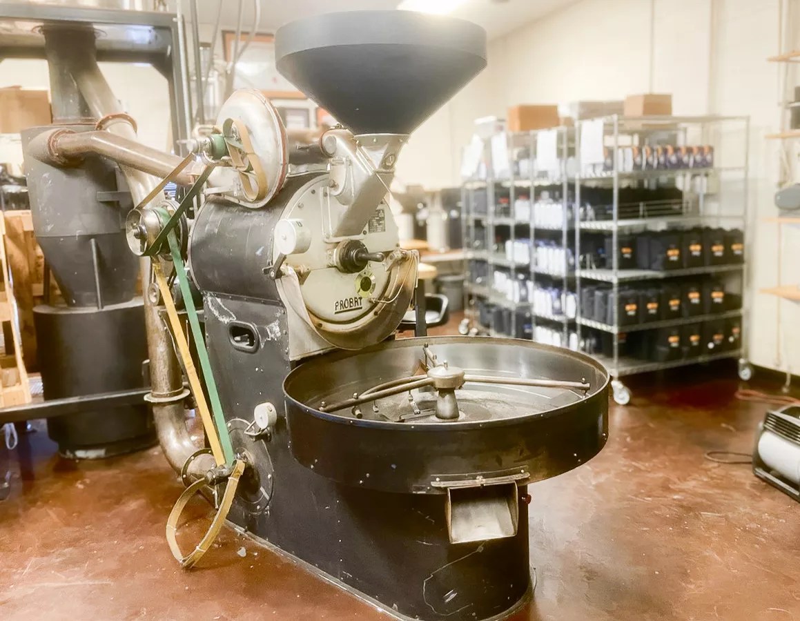 The cast iron of the roaster heats the coffee beans evenly and molecularly faster than modern techniques, so when the coffee cools it becomes sweeter rather than abrasive and acidic. The difference is obvious with the first sip, even for us coffee amateurs.