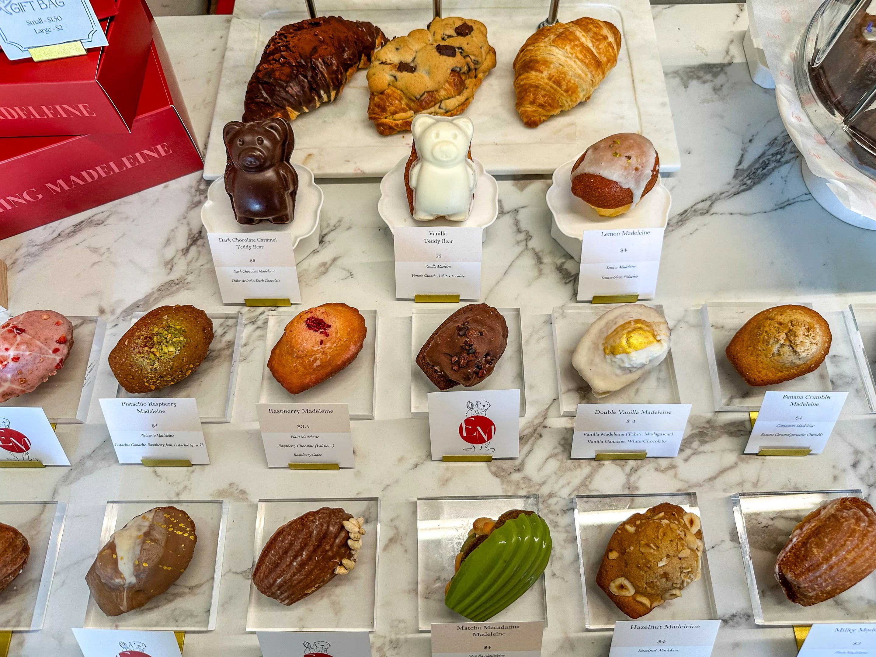 This endeavor is the brainchild of Seunghee Park, a young pastry chef from South Korea. Originally offering a pop-up that provided madeleines to such places as Moo Dae Po Korean BBQ and Brian’s Coffee Roasters, Park was able to open a physical storefront in August that churns out a plethora of flavors and types of madeleines, some with filling and some without, some glazed, some traditional and some unique, along with croissants, crookies, canelés, teas, coffees and even cute little vanilla teddy bears.